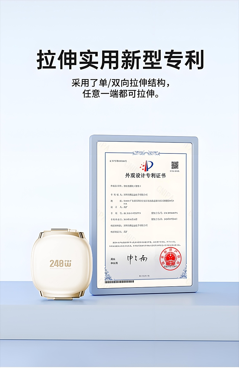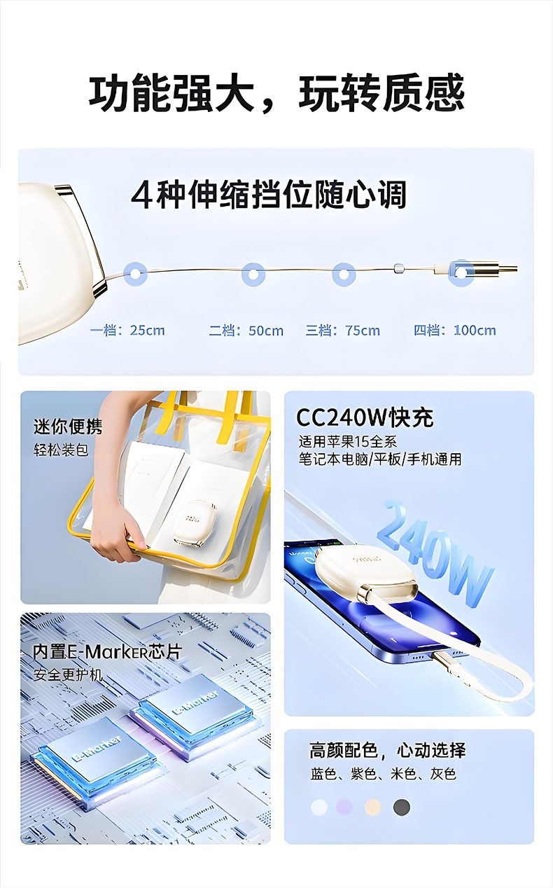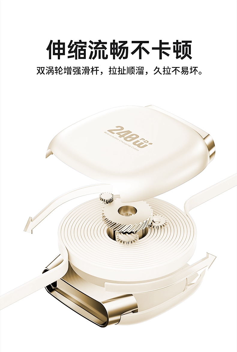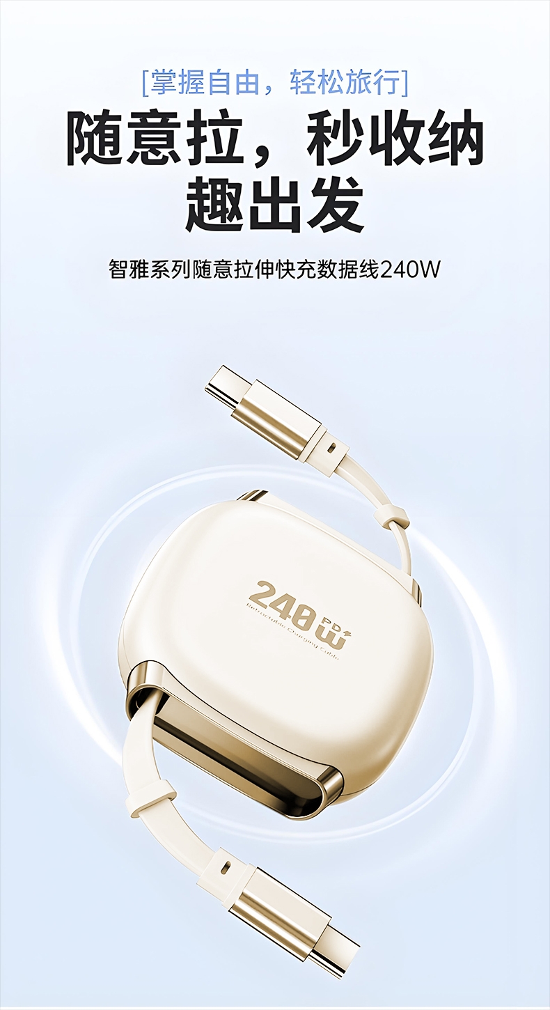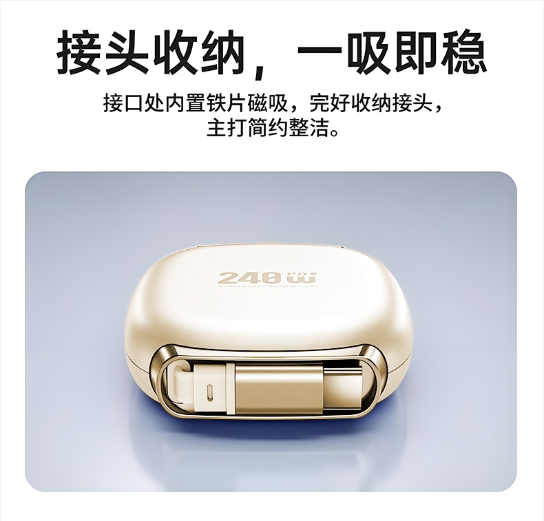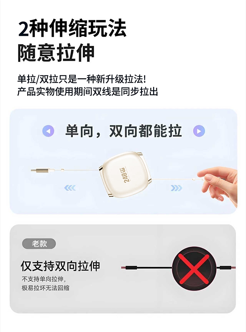 智能识别快充设备,合理控制电流、电压安全快充;单拉/双拉只是一种新升级拉法!;接口处内置铁片磁吸,完好收纳接头