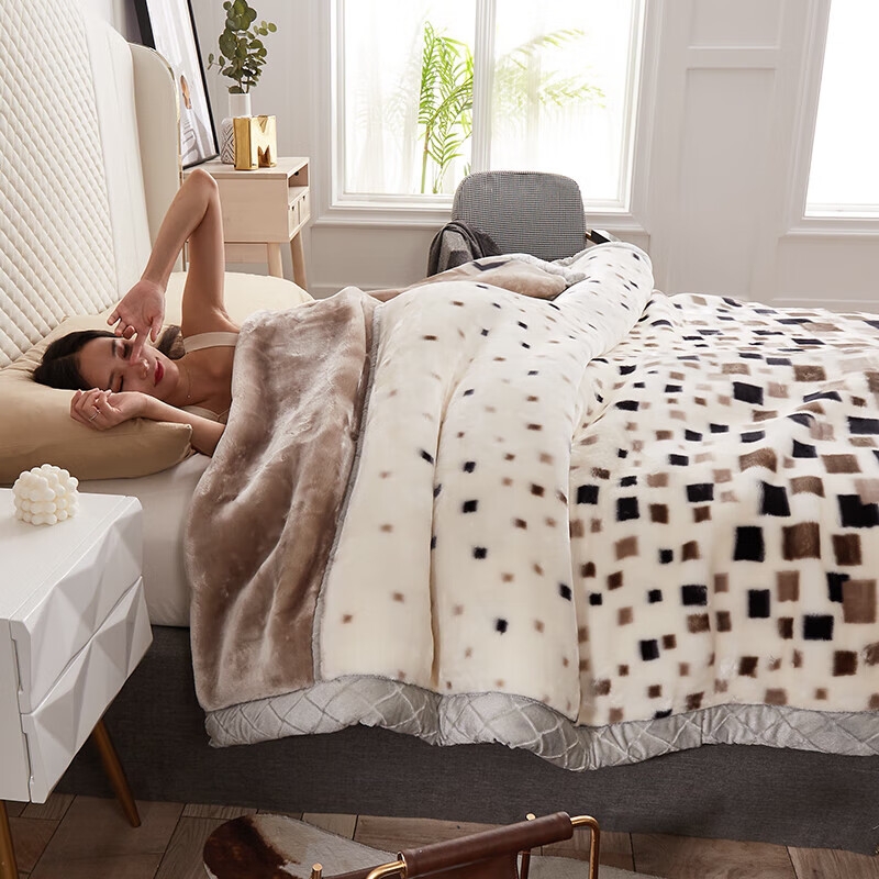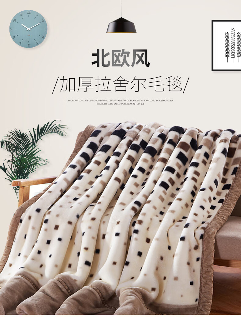 双层加厚,保暖升级;拉塞尔材质,触感柔软;科技植绒,不易掉毛