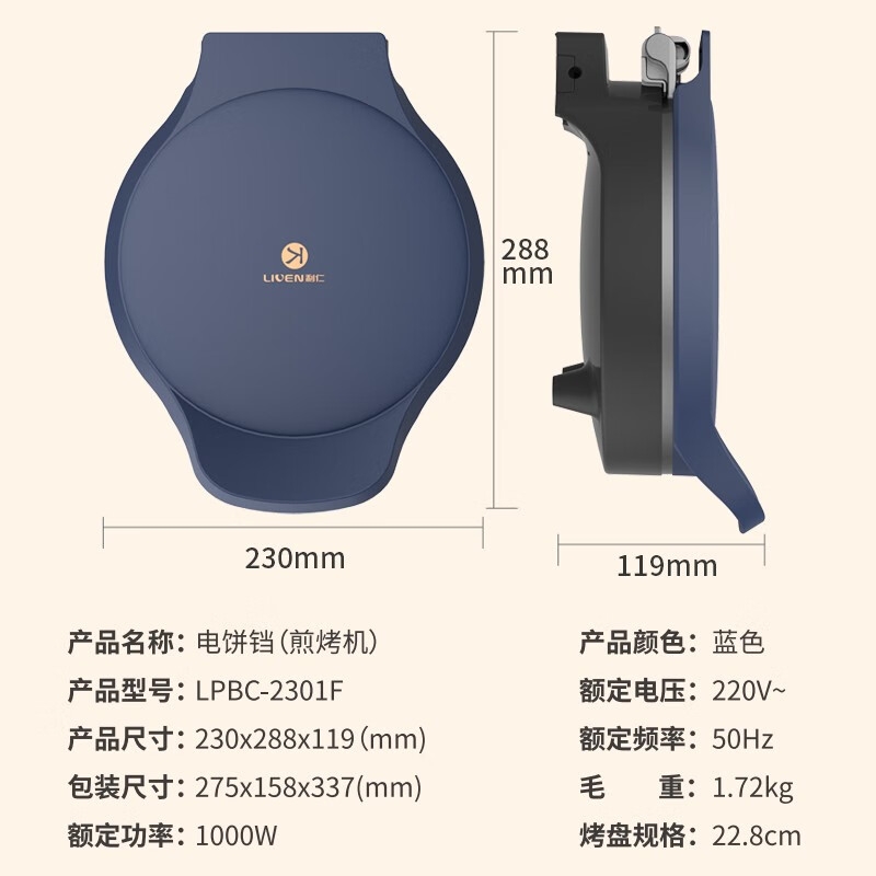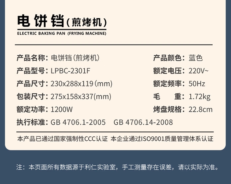 利仁 双面加热多功能电饼铛加深LPBC-2301F