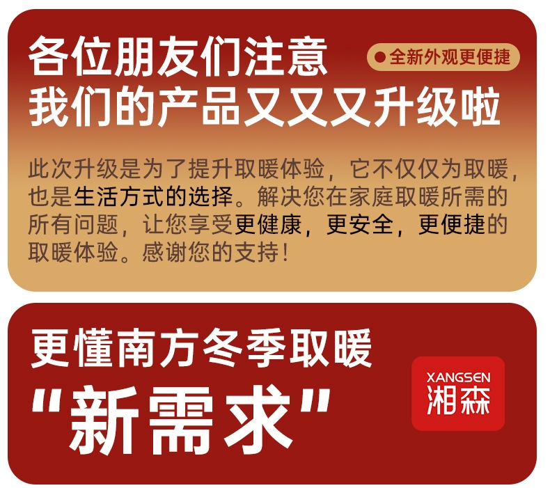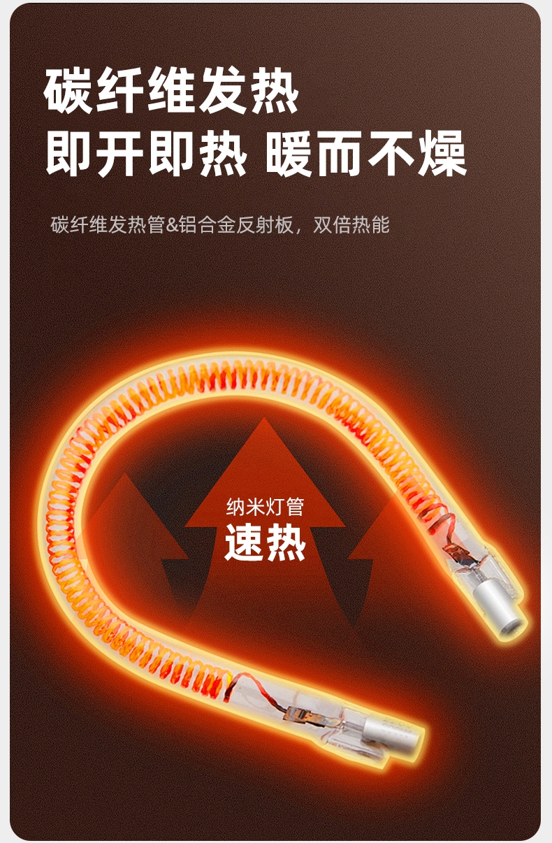 欧简约设计,原木自然温暖。安全节能省心打造舒适冬天;无极调温,精准控暖,满足您的一切温度想象;柔光速热,健康取暖。呵护双眼,家人安心;碳纤维管,即开即热。暖而不燥,长久相伴