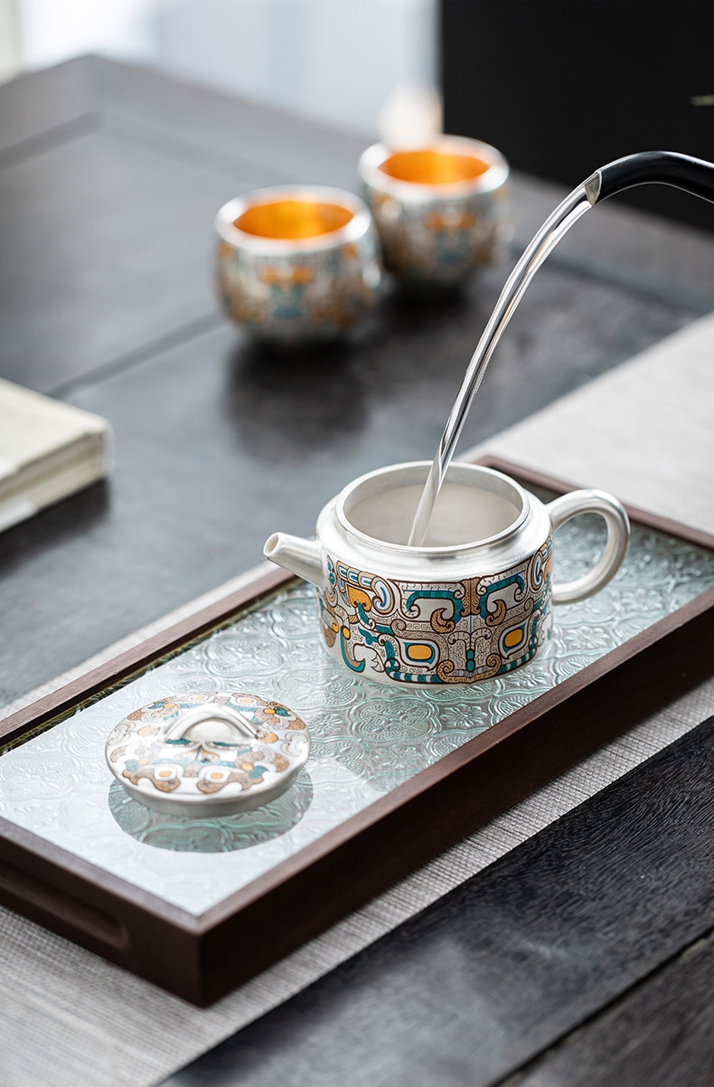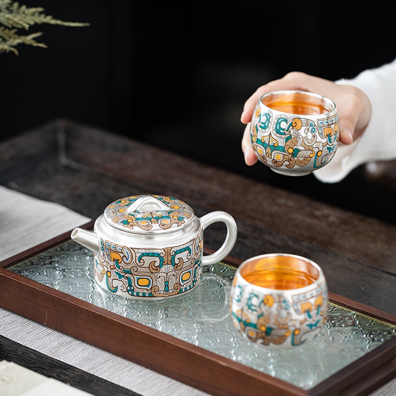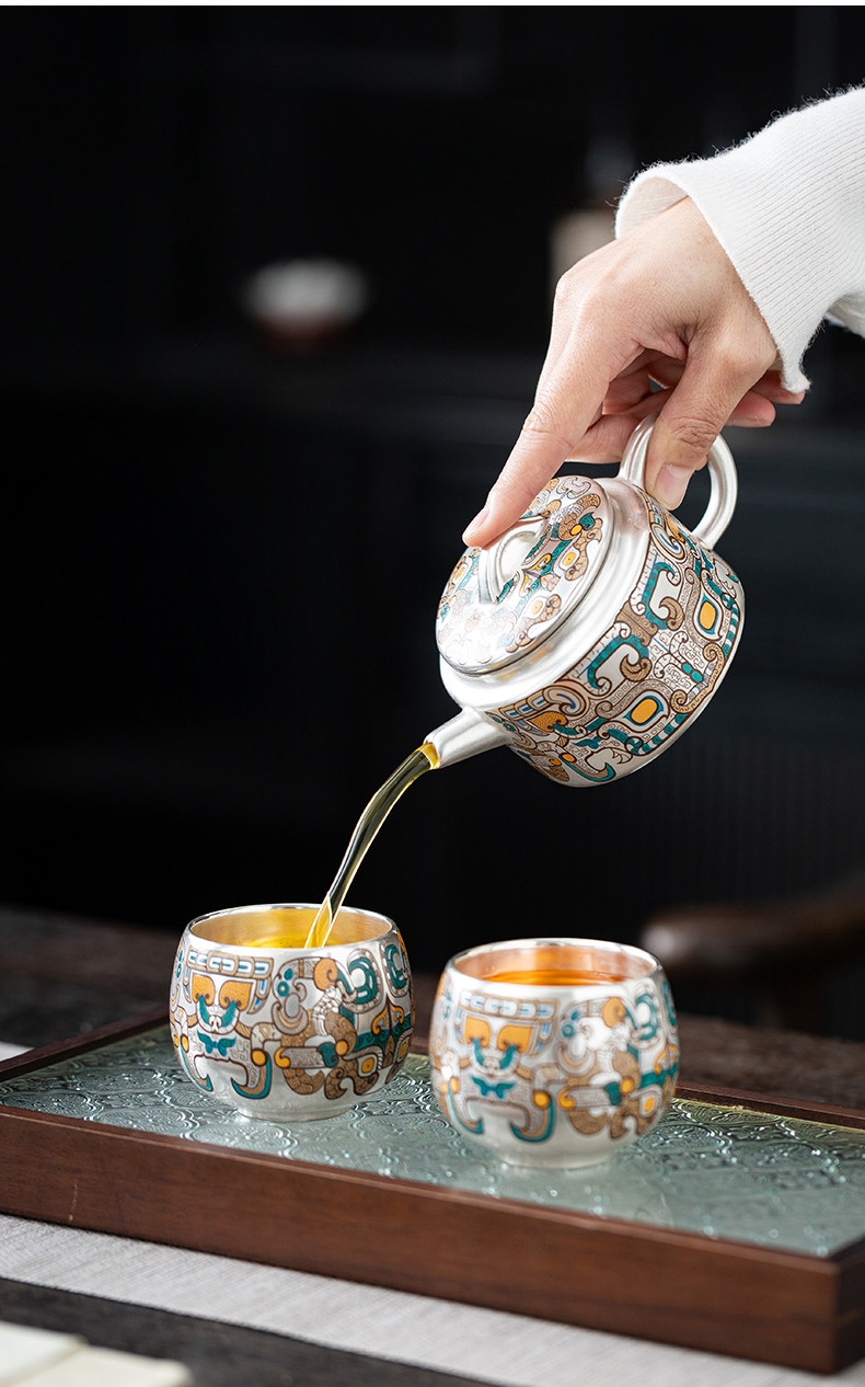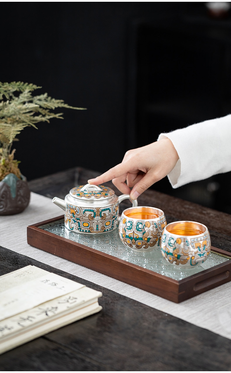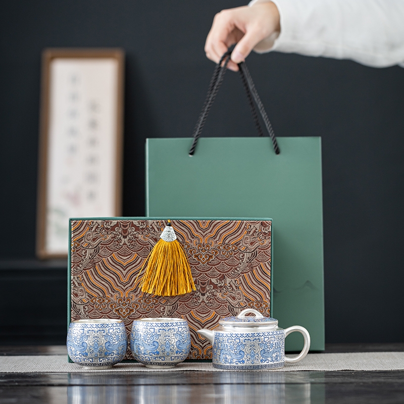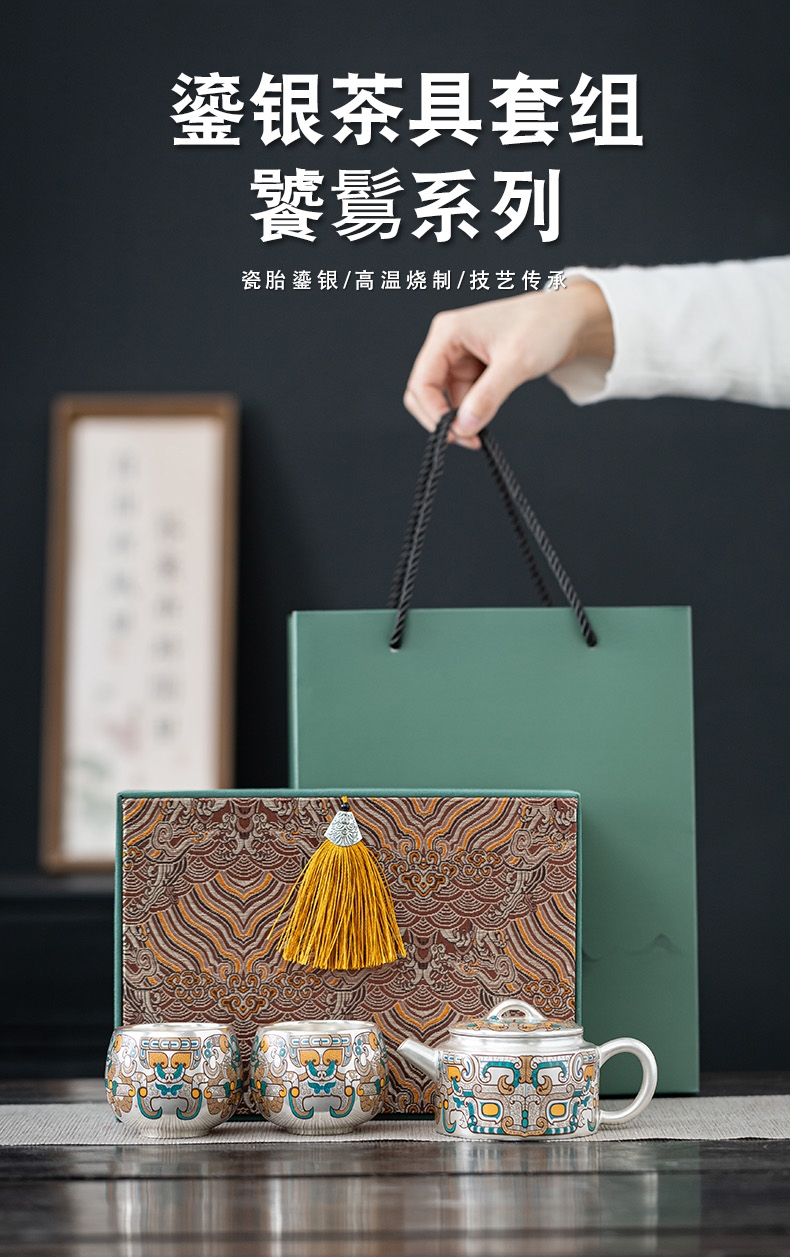 配置清单:鎏银茶壶*1 鎏银杯子*2 礼盒*1 礼袋*1