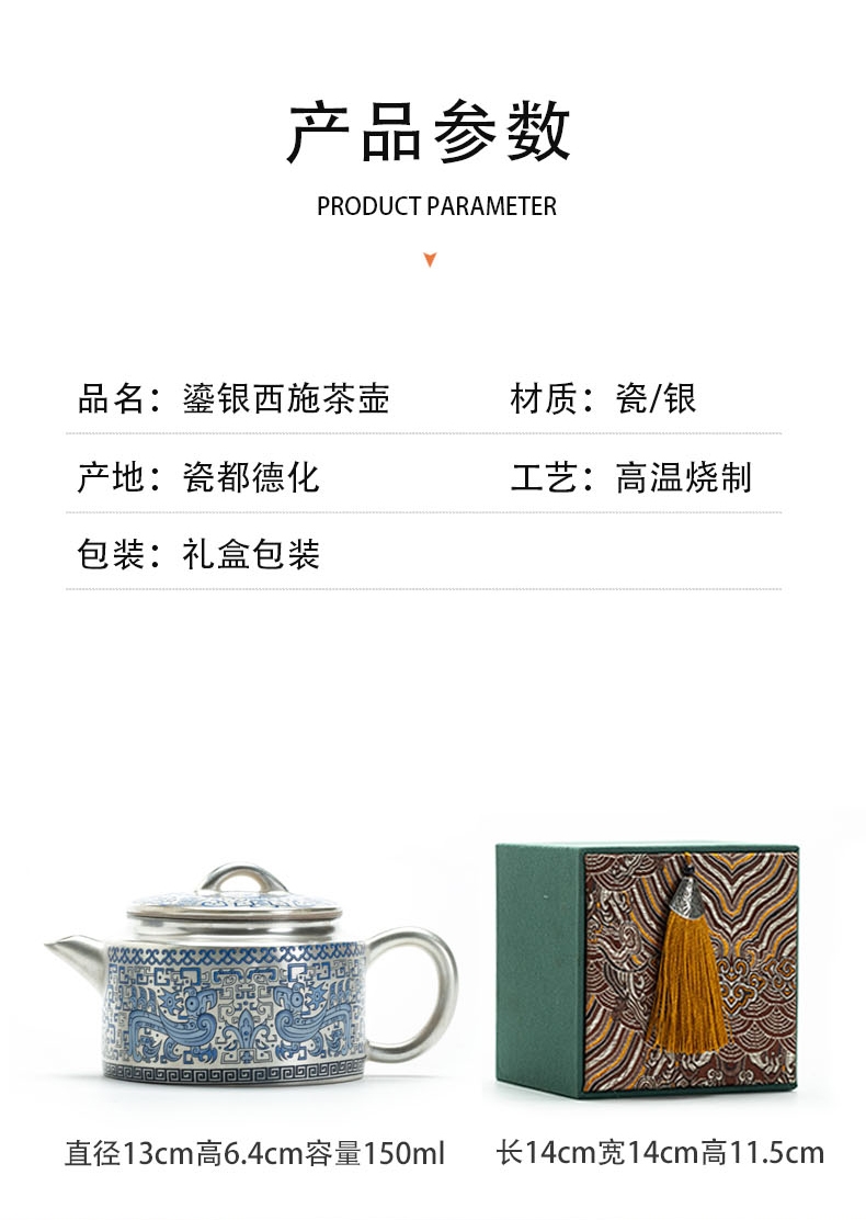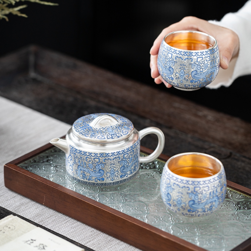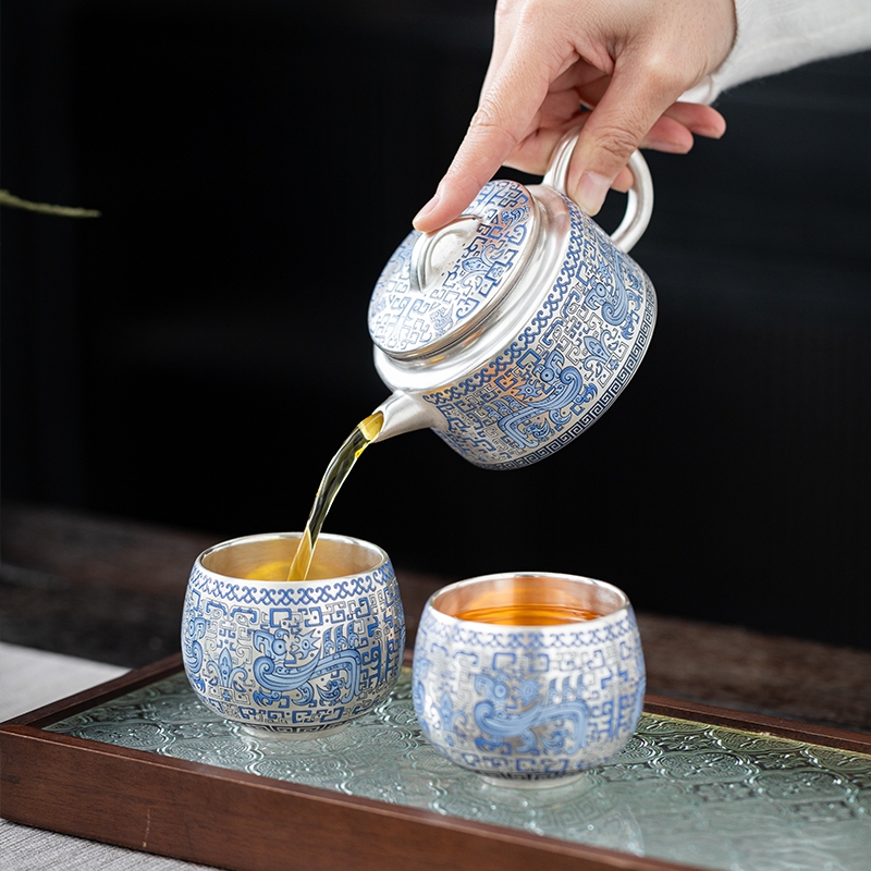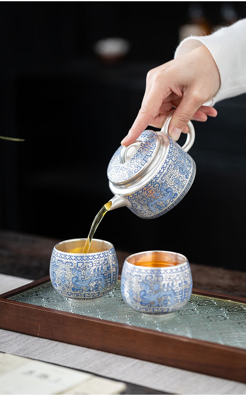唐川 鎏银仿古壶西施壶功夫茶具
