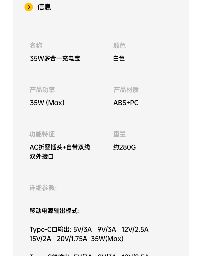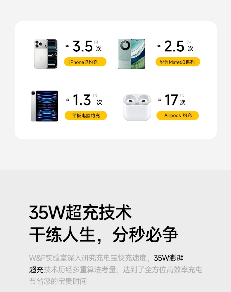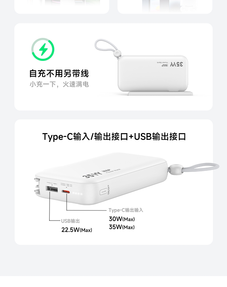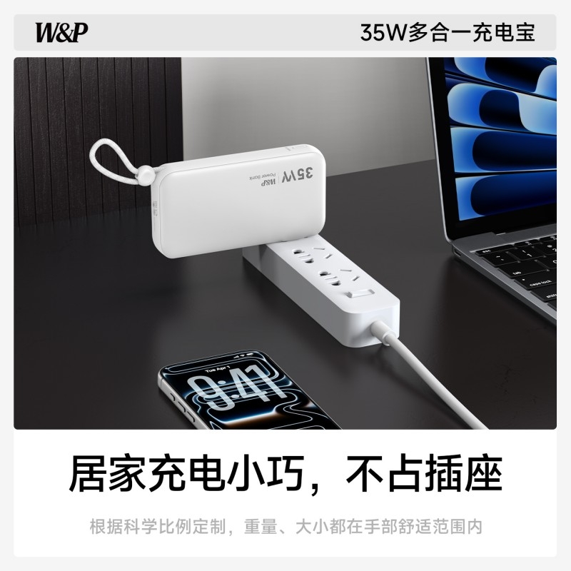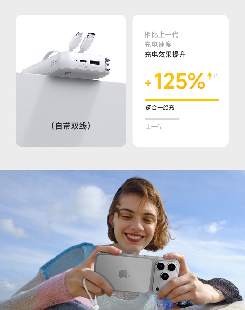 20000mAh大容量;折叠式AC插头;出行无需带线快充双线,畅玩无忧