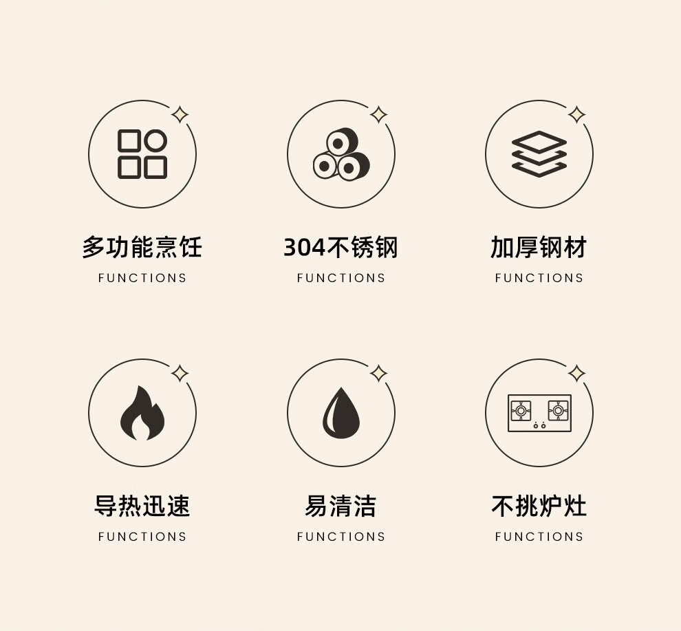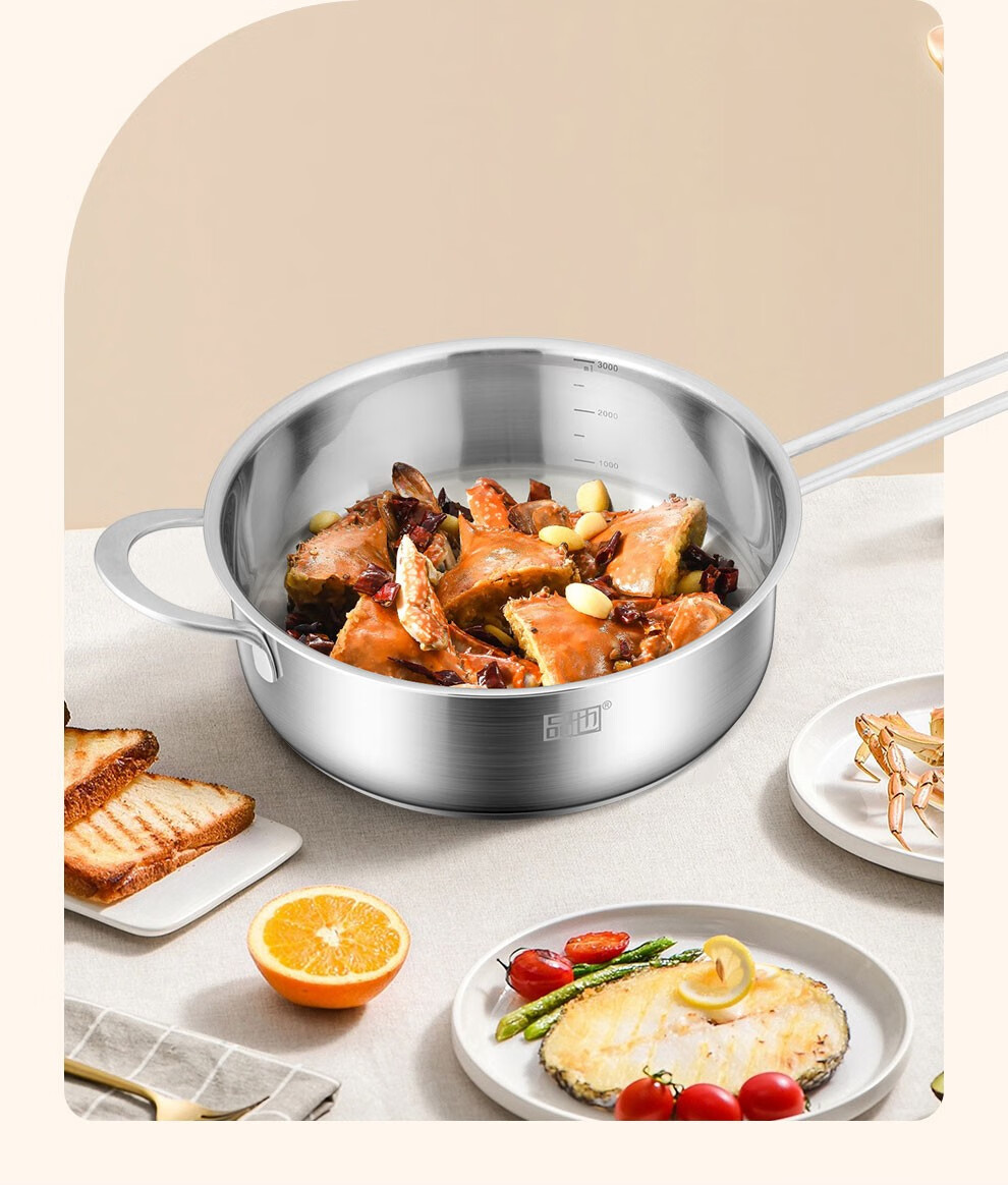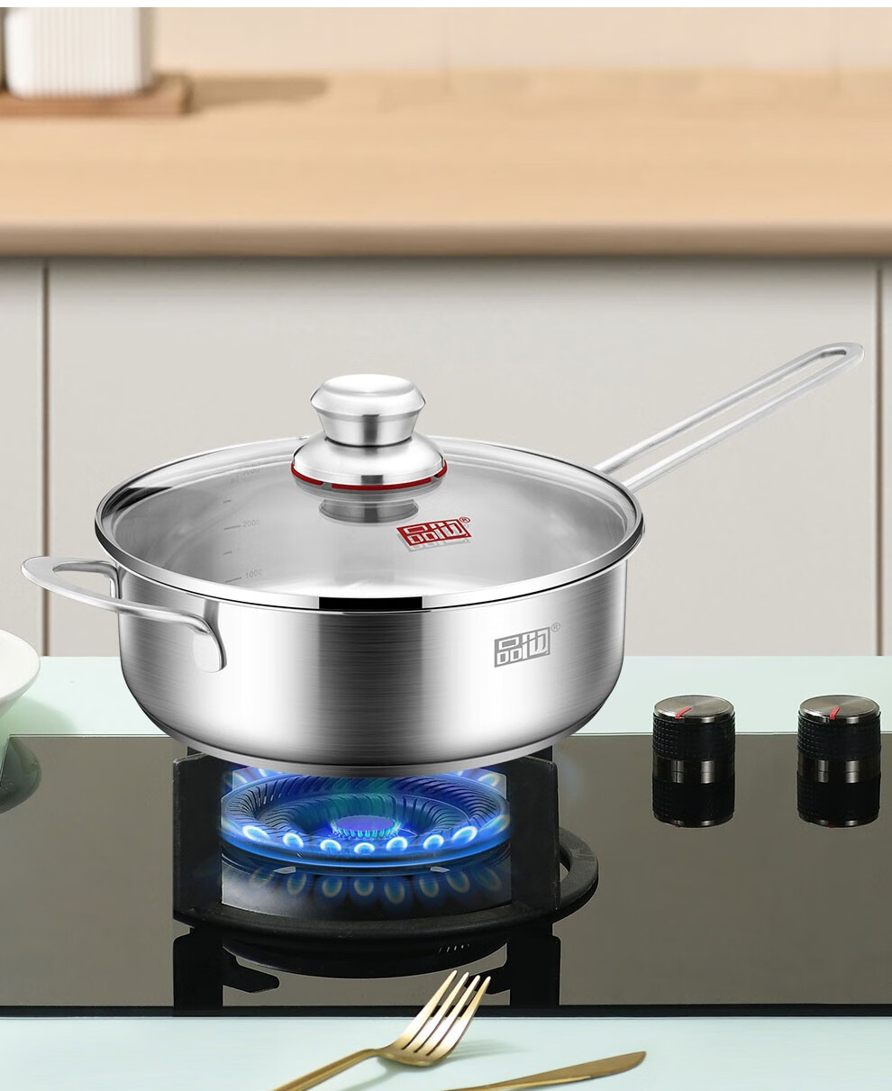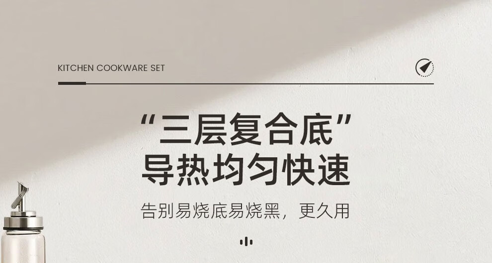 隔热小红圈空心顶珠;侧扁形钢线锅把手设计;三层复合锅底