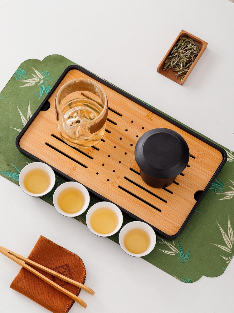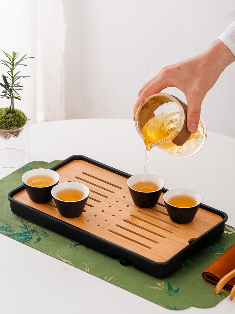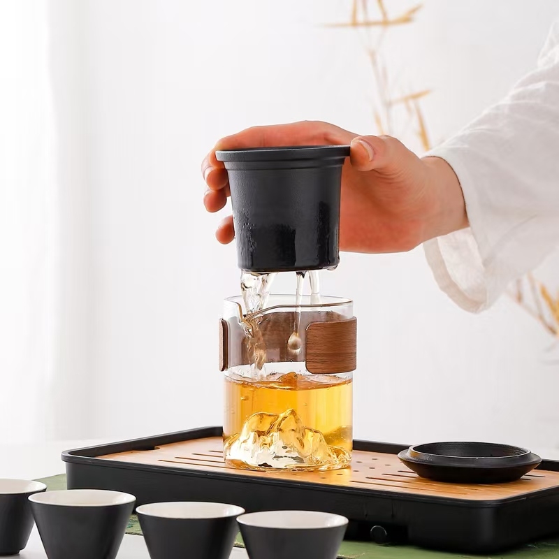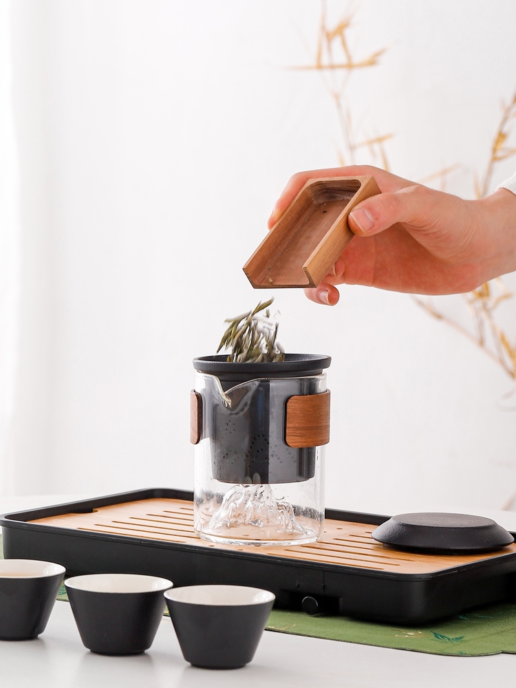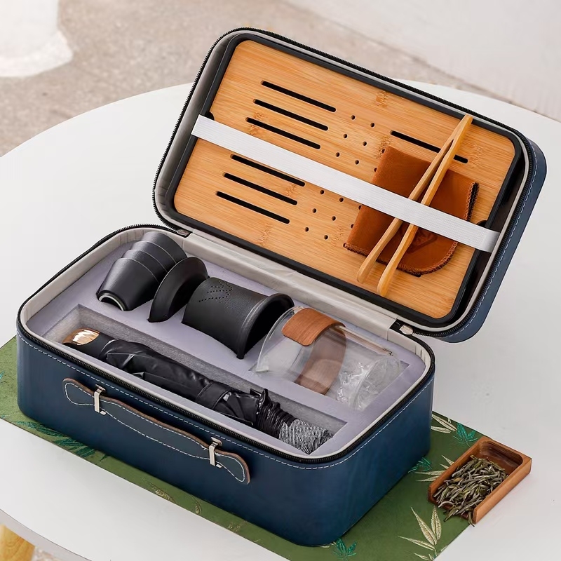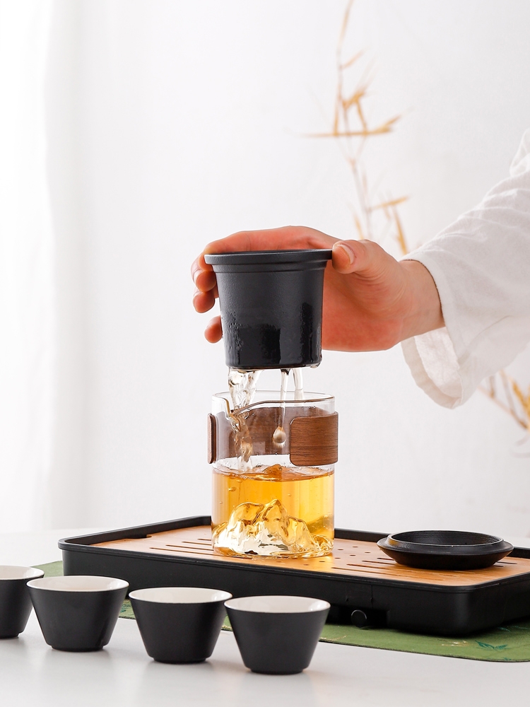配置清单:1壶4杯 1雨伞 1玻璃公道杯 1茶托茶漏 1茶盘 1旅行包 1茶巾茶夹