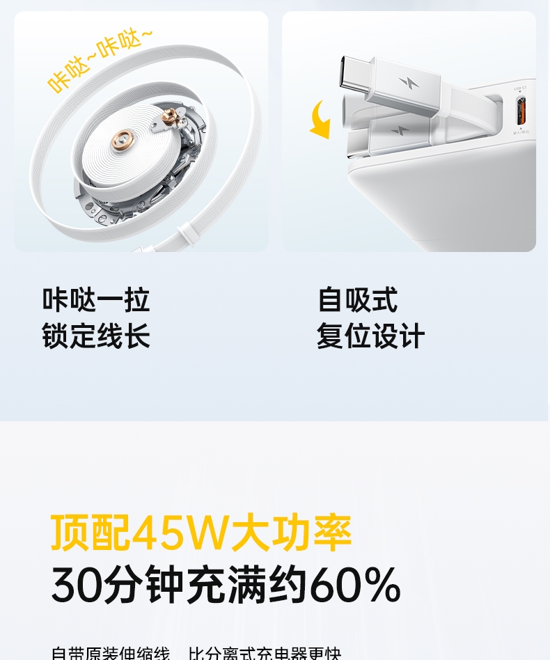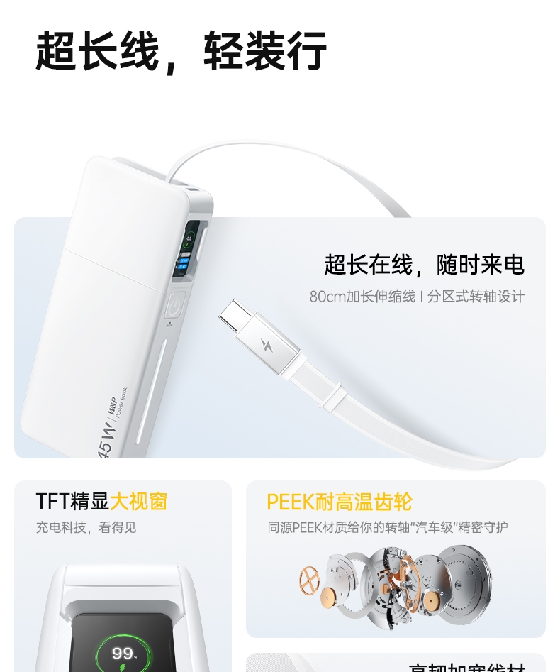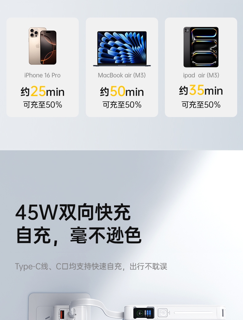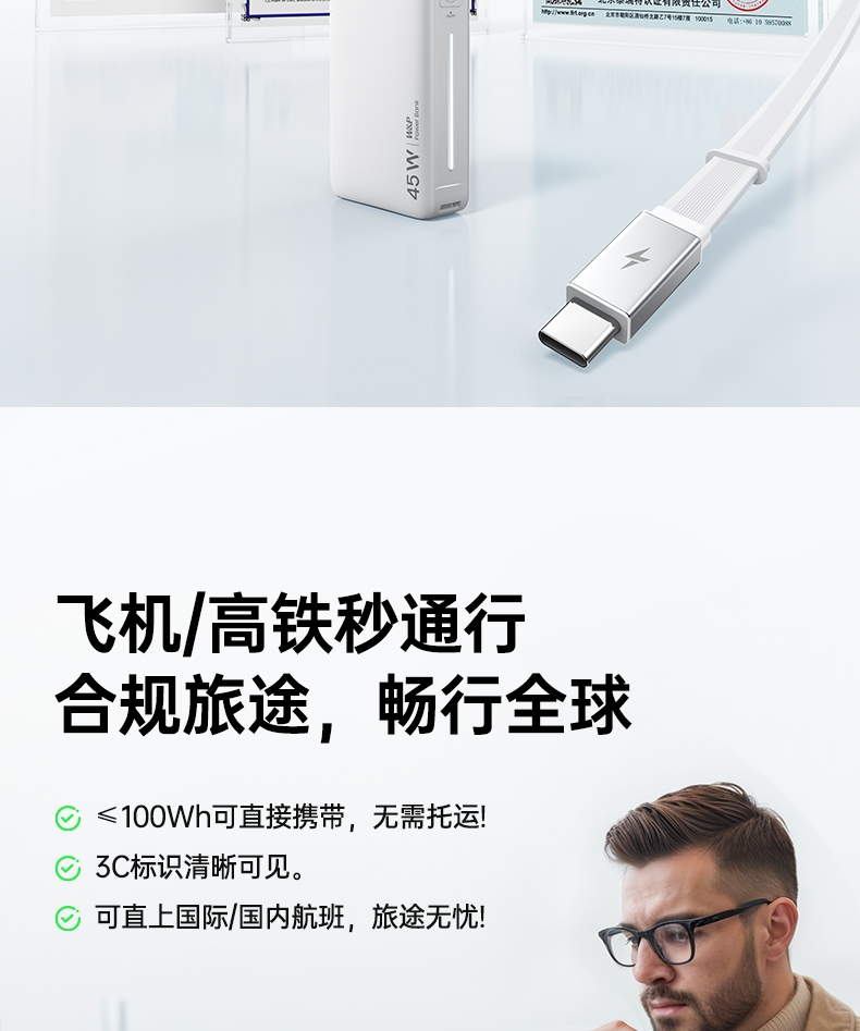 畅行全球 可国际航班;45W闪充超长伸缩线;3C认证 可上飞机