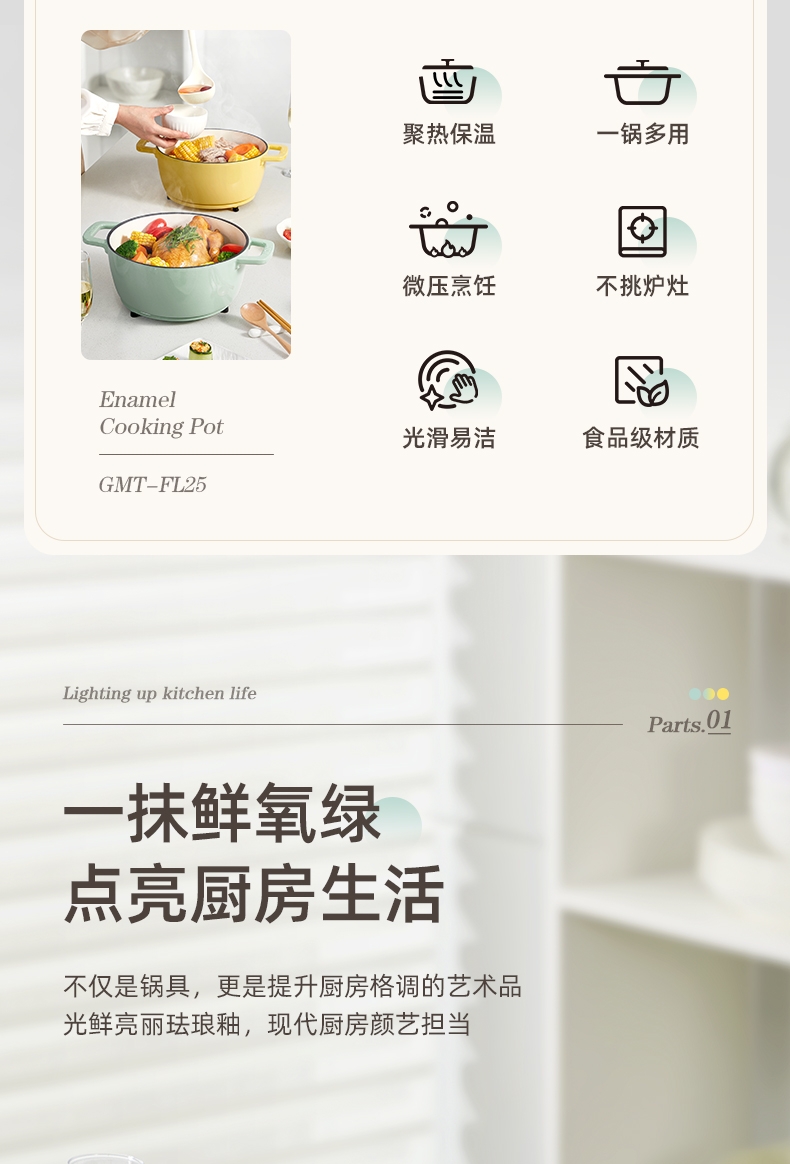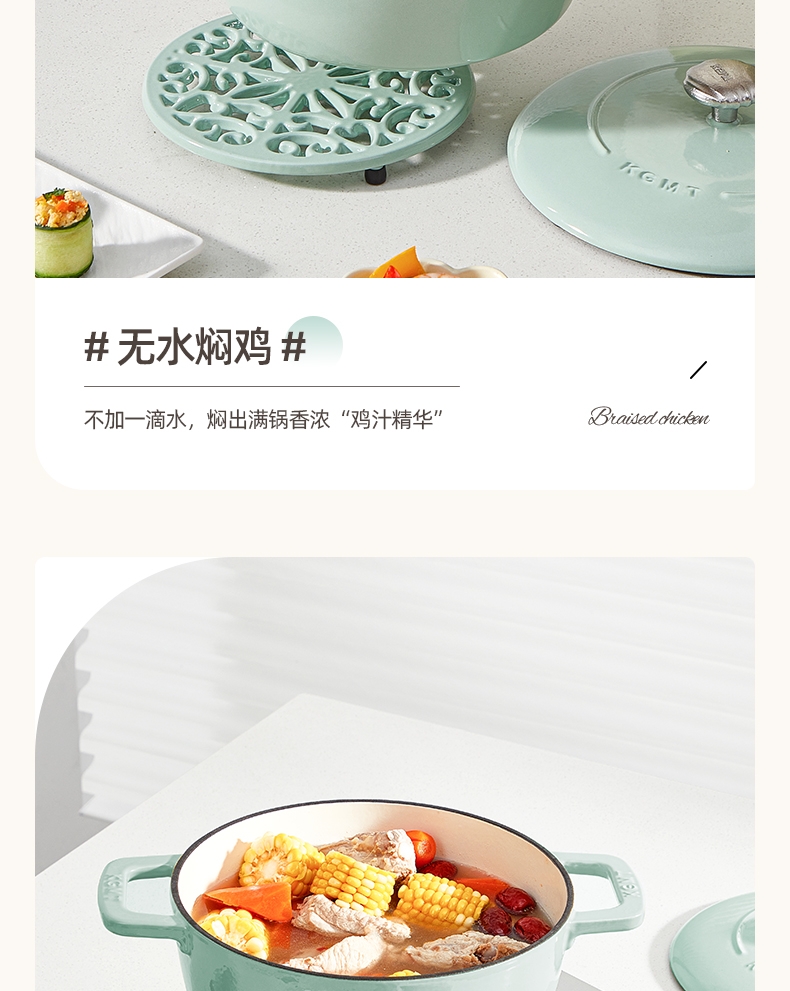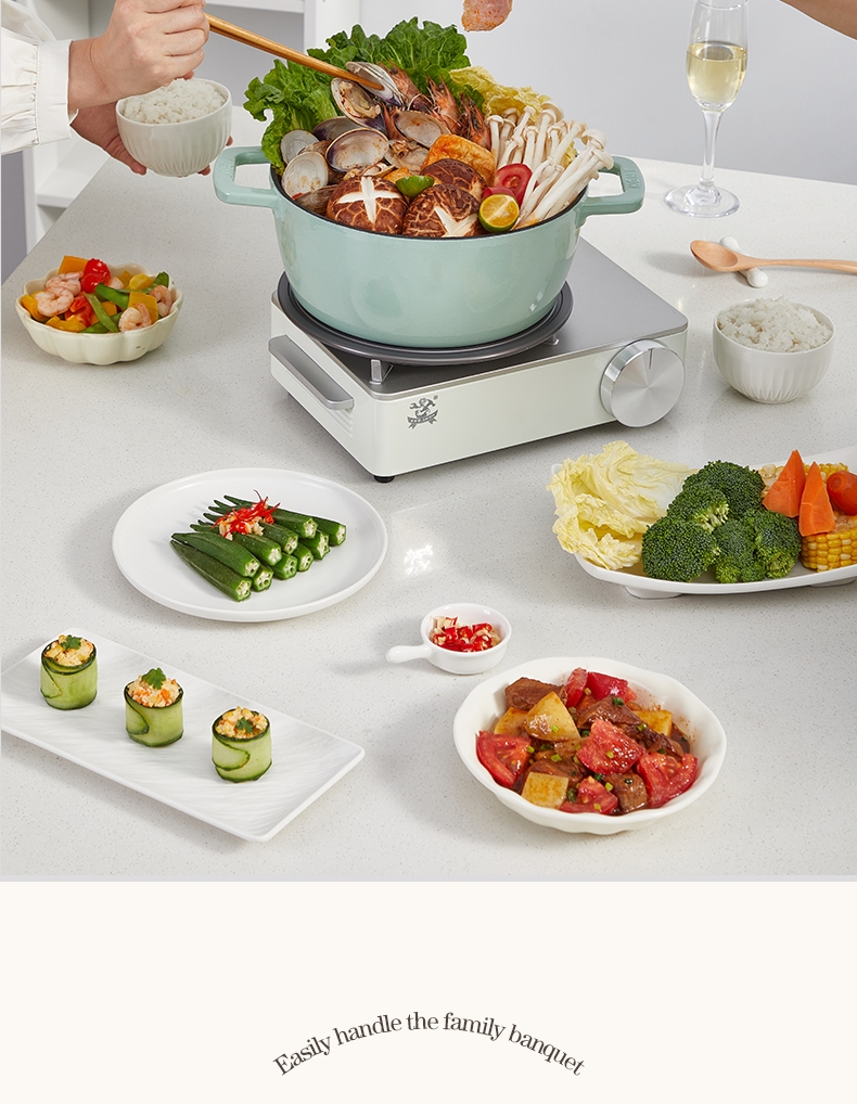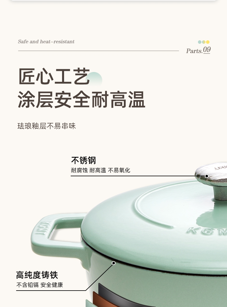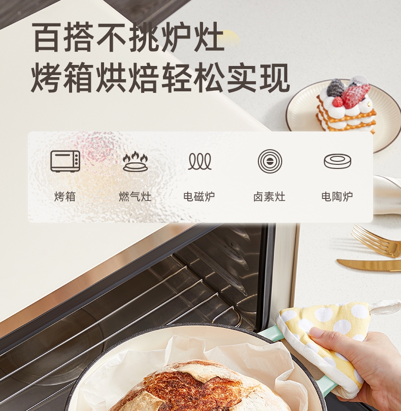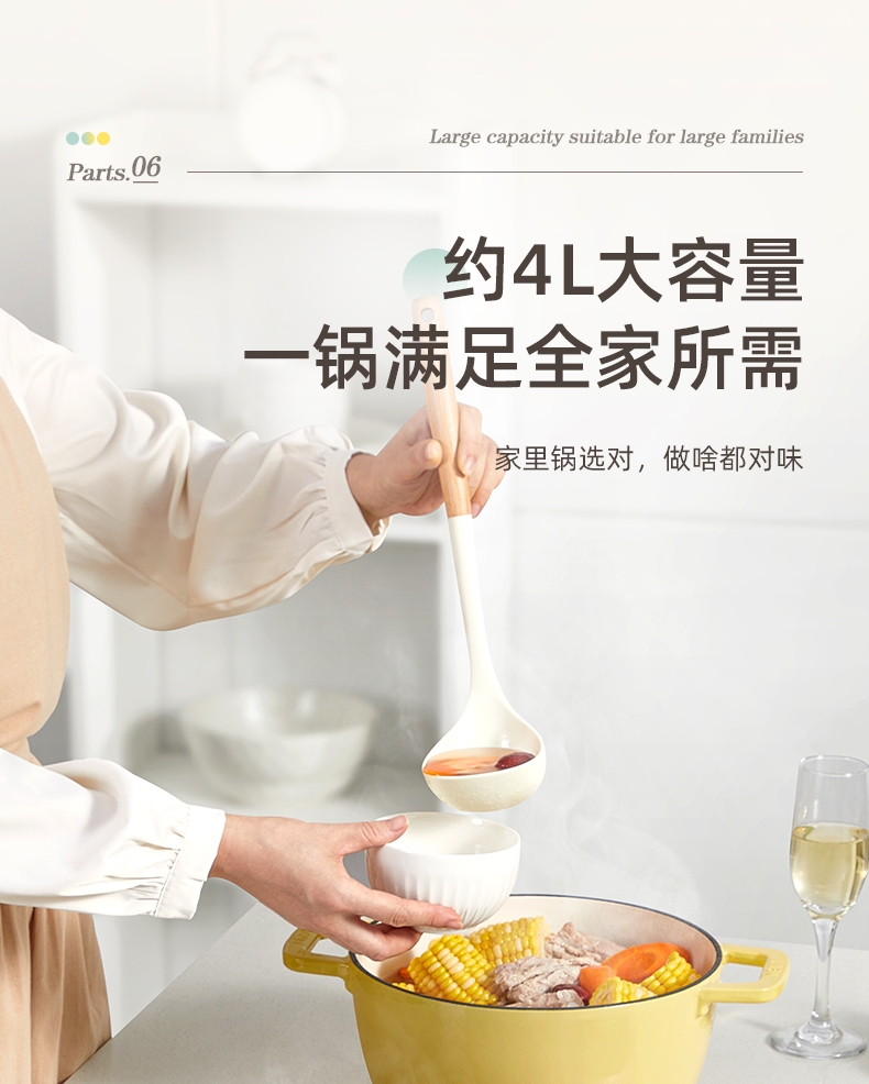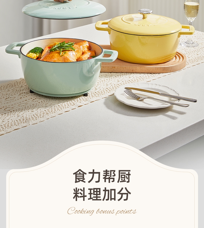 一锅多用,厨房小白变大厨,焖、炖、煮、煎、炸;锅具直径25cm,容量4L大容量,一锅解决所有美食;铸铁锅体,进口陶瓷釉面,安全耐高温,釉面光滑不粘