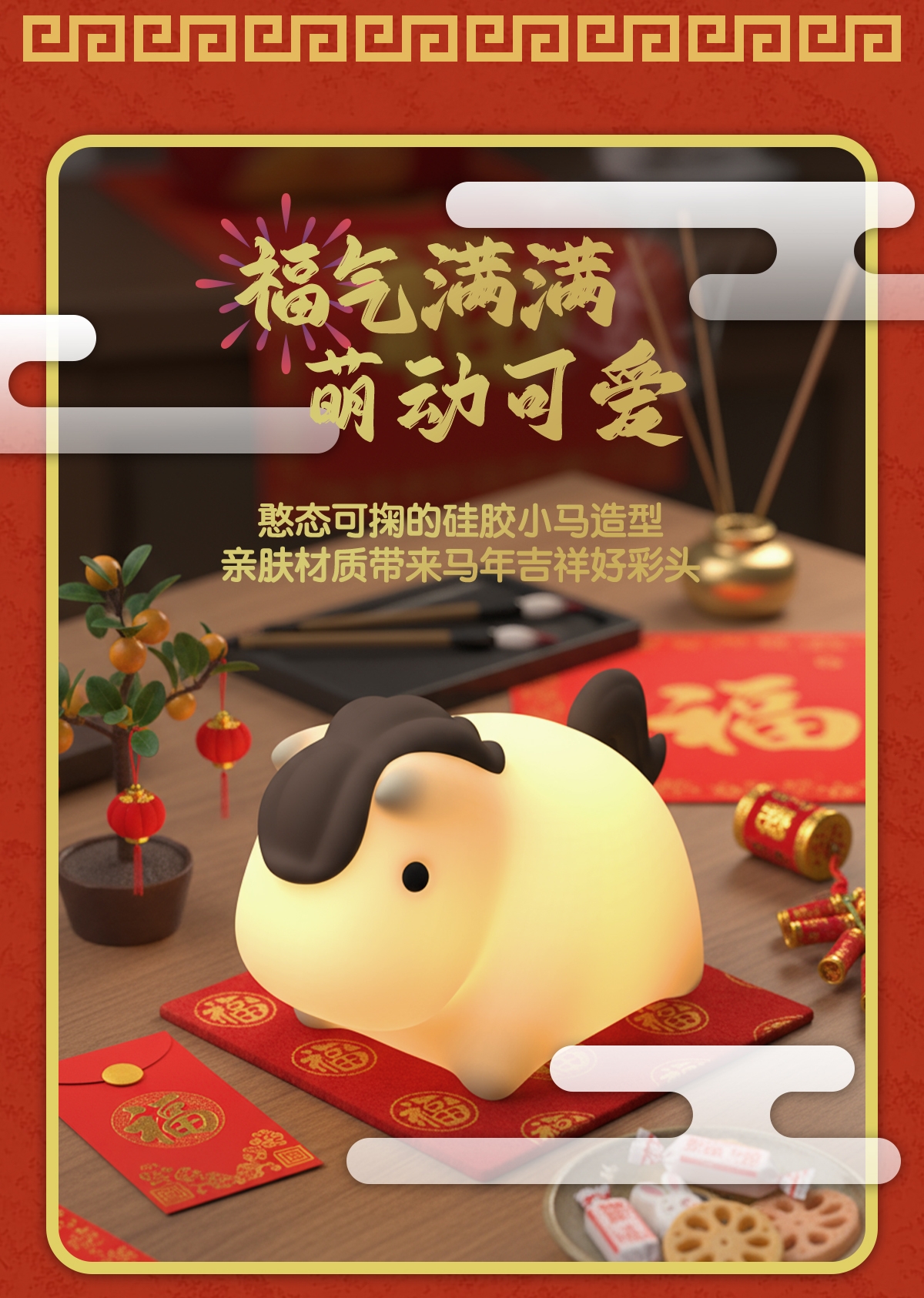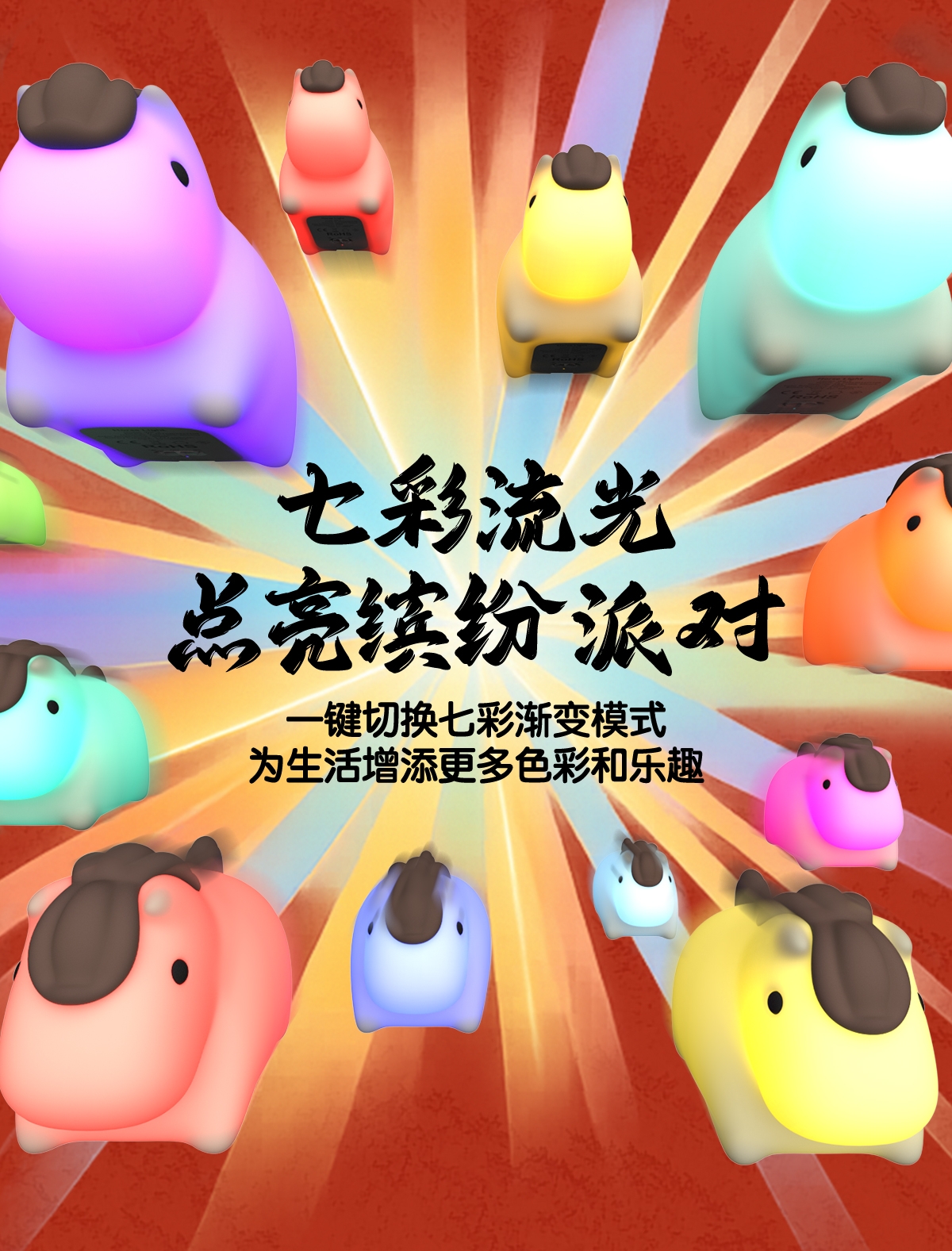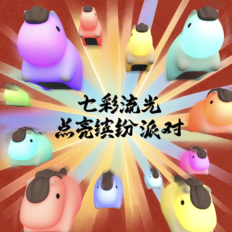 柔和暖黄光线,氛围感拉满;七彩渐变,增添生活乐趣;小马造型,马年吉祥好彩头