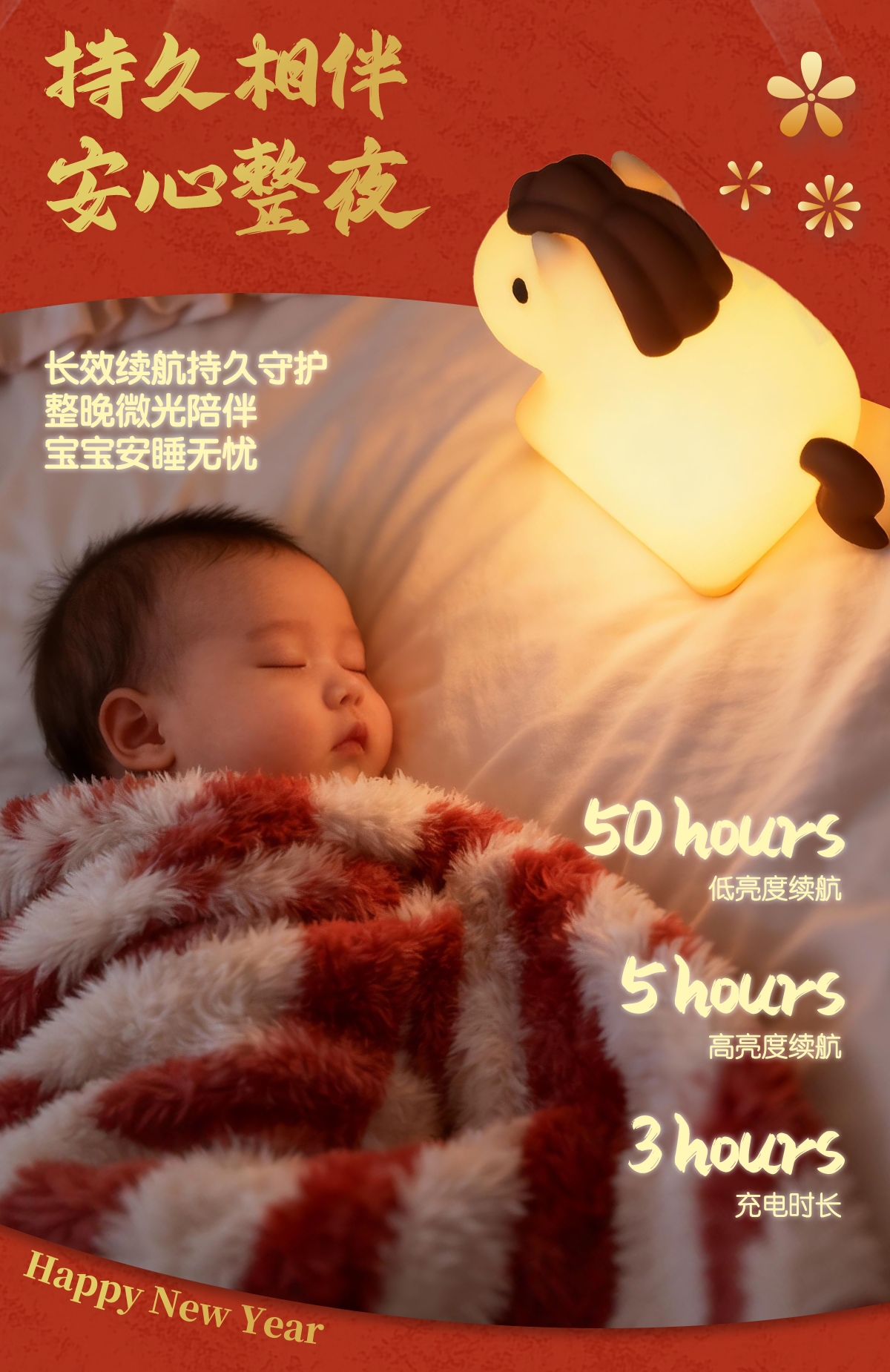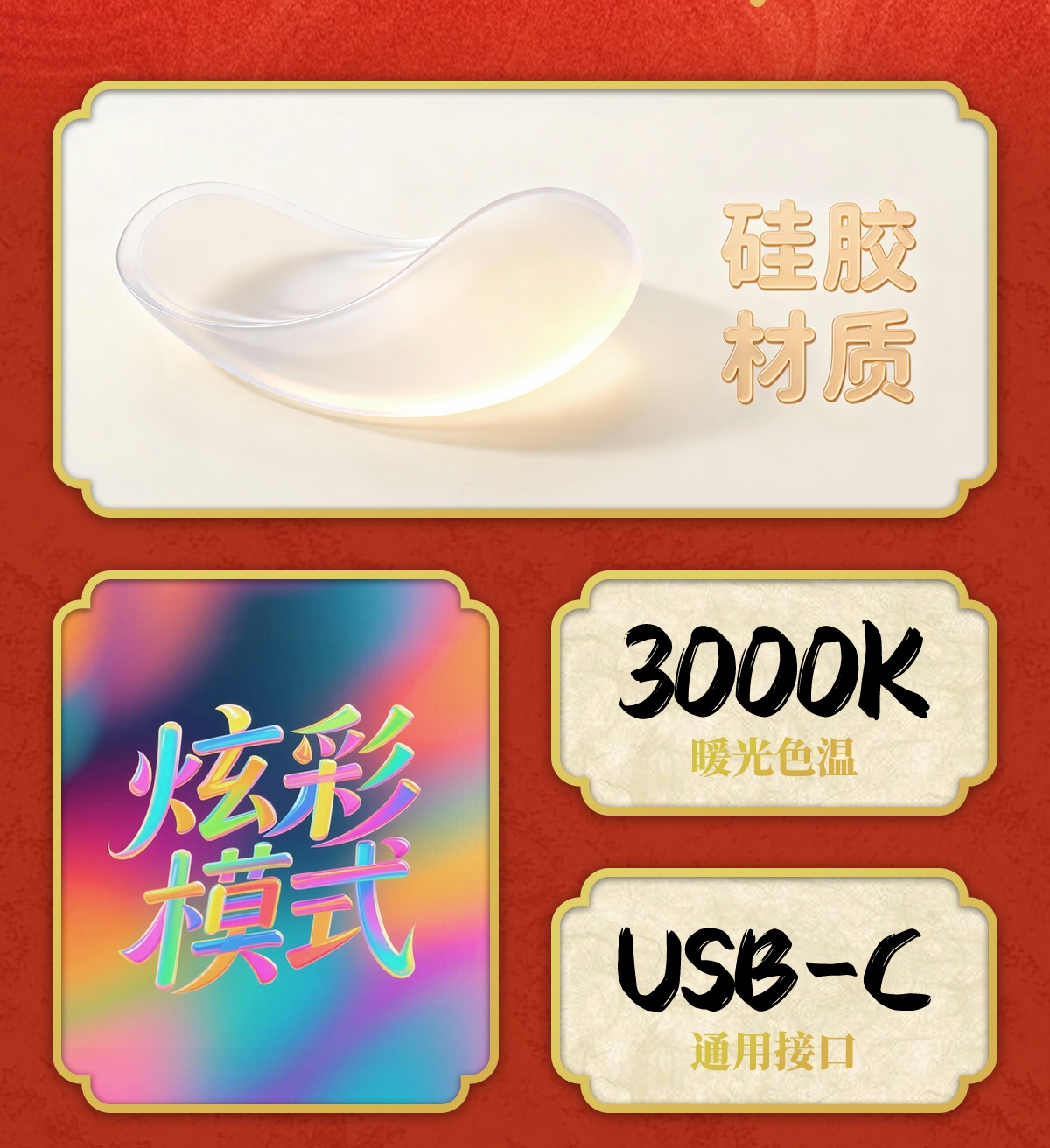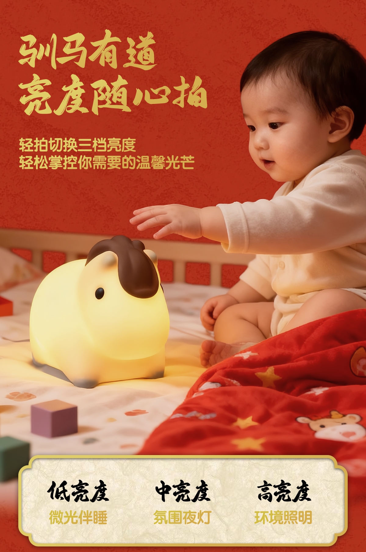 柔和暖黄光线,氛围感拉满;七彩渐变,增添生活乐趣;小马造型,马年吉祥好彩头
