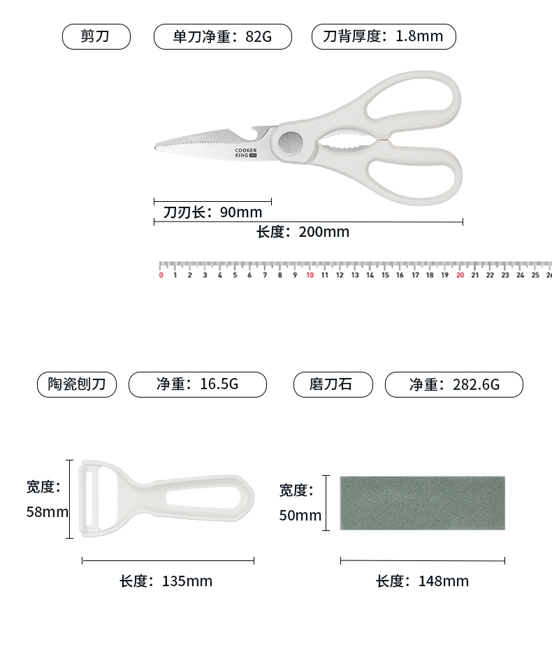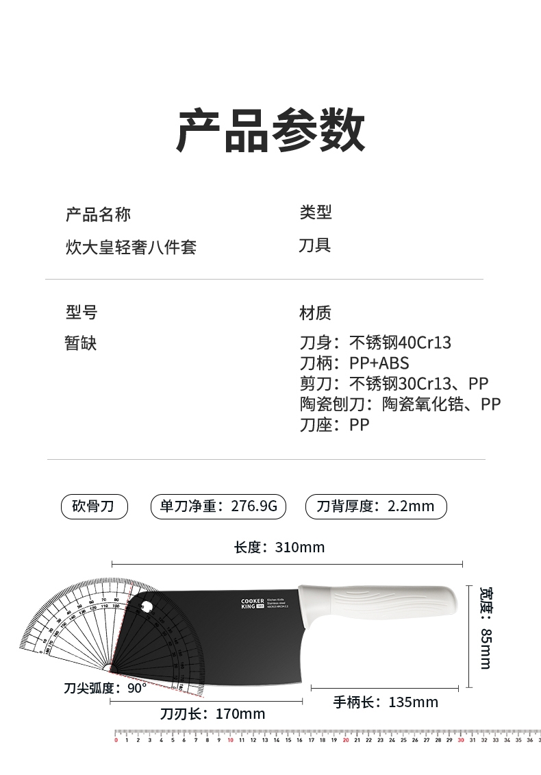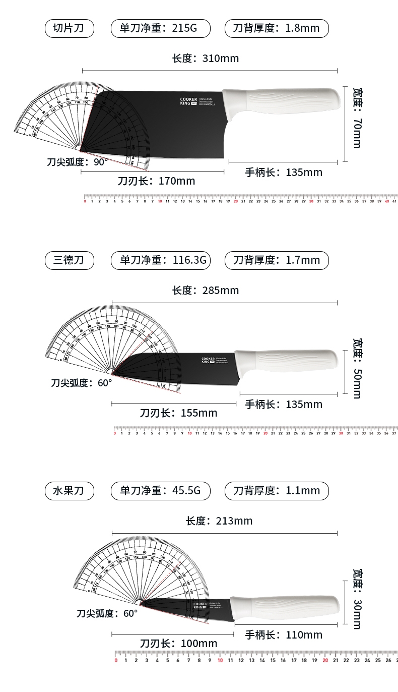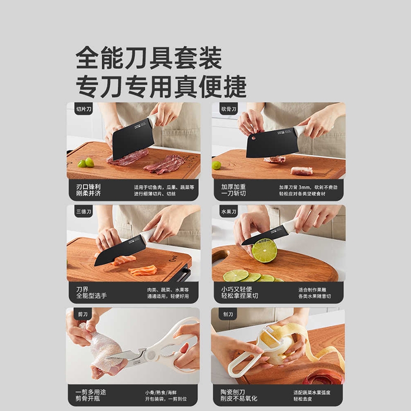 规格:剪刀*1 水果*1、三德刀*1、切片刀*1、砍骨刀*1
