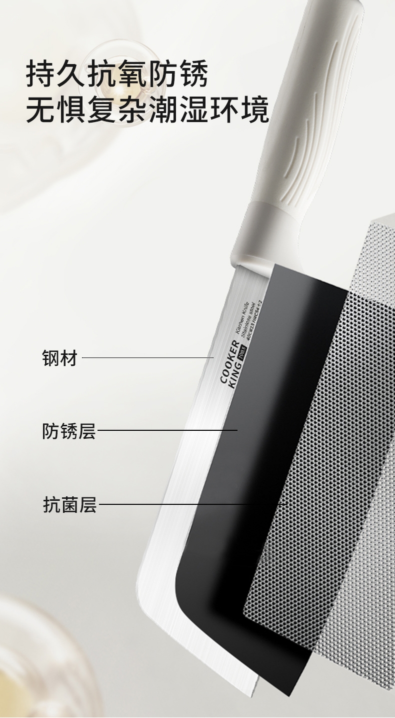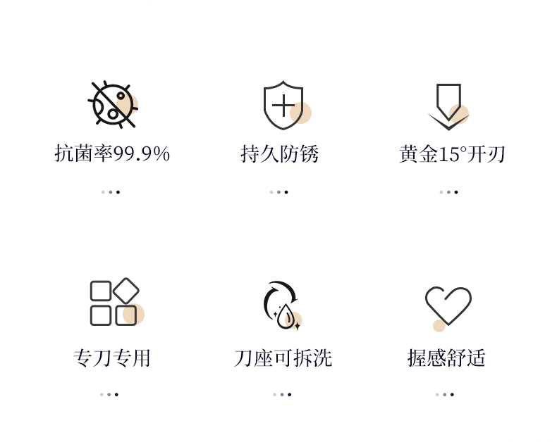抗菌率99.9%;持久防锈;黄金15°开刃