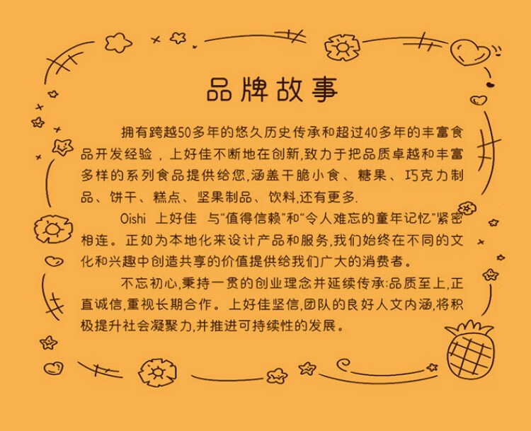 经典风味 + 极致脆感,一口唤醒童年记忆;严选原料 + 健康工艺,美味无负担;国民情怀 + 创新表达,品牌口碑过硬