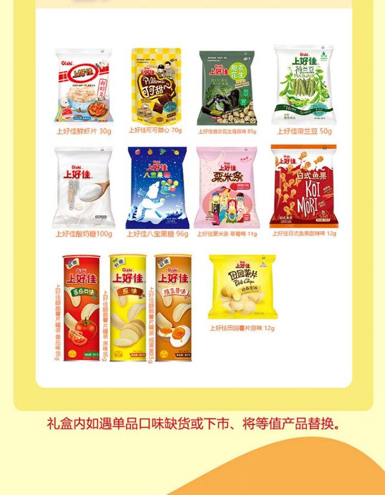 包装清单:上好佳经典零食百宝箱B套餐739g