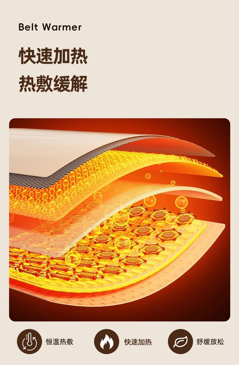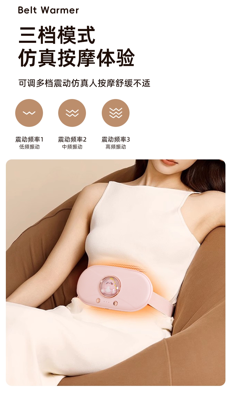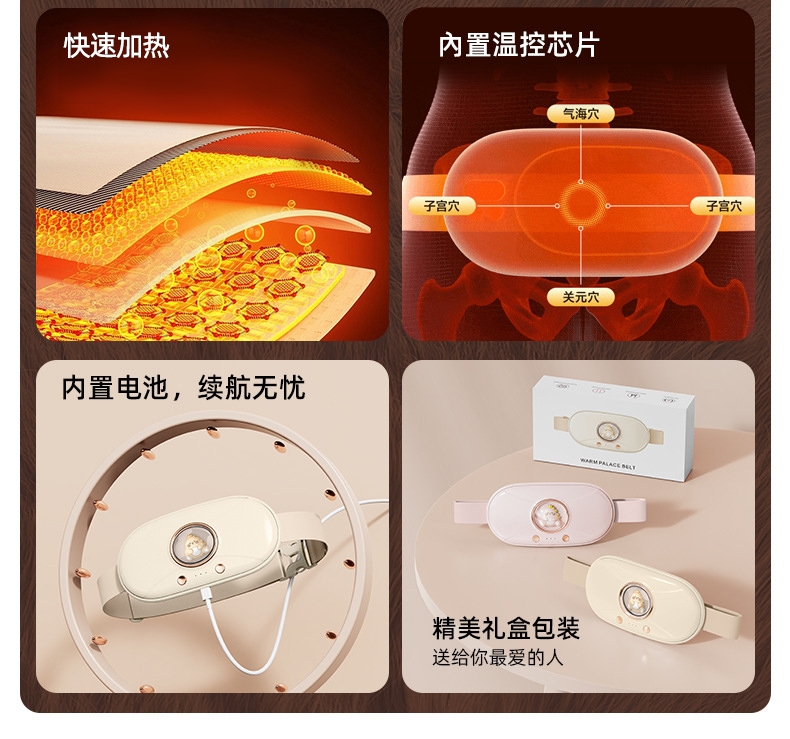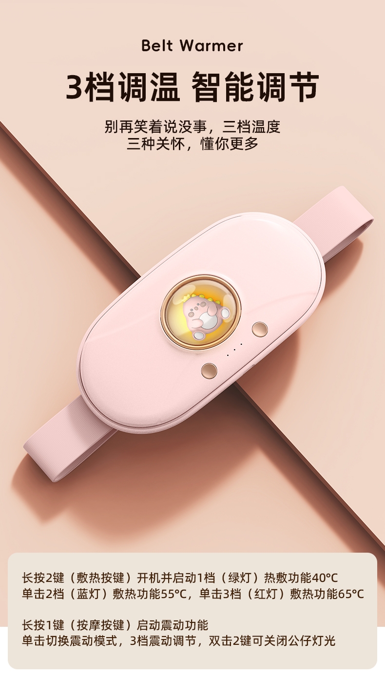三档调温,智能调节;内置大容量电池,续航无忧;快速加热,热敷缓解
