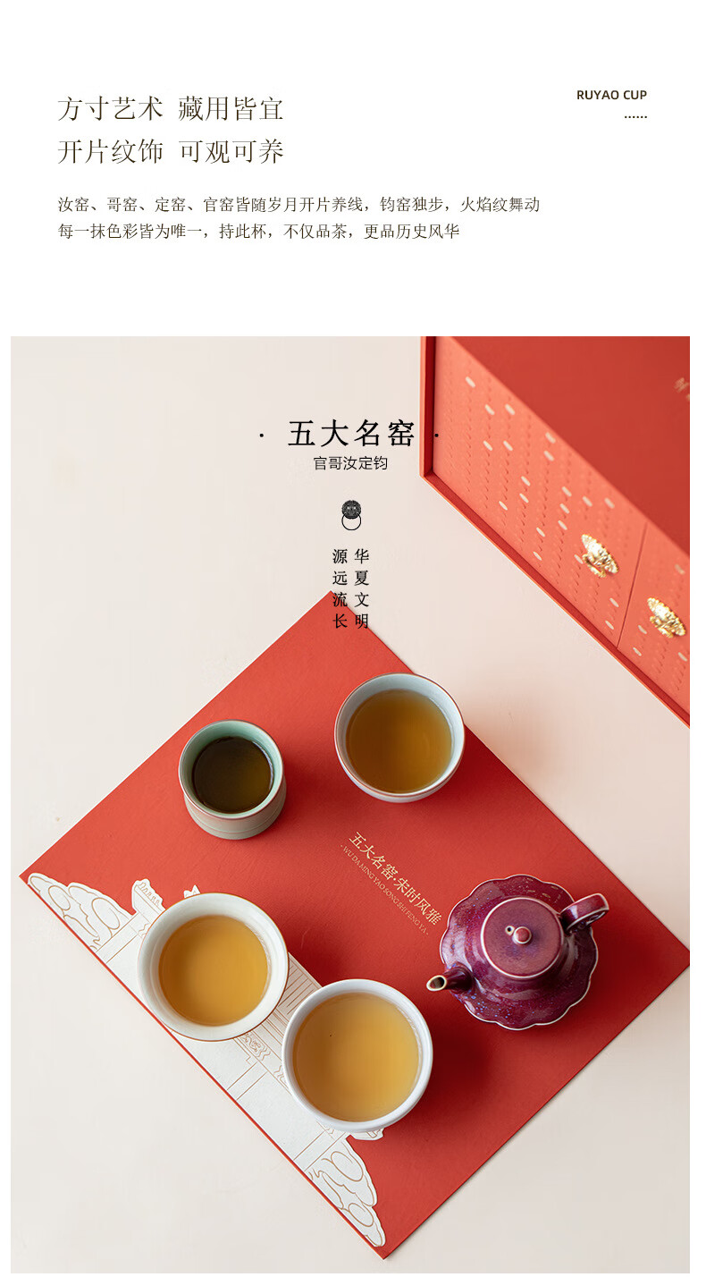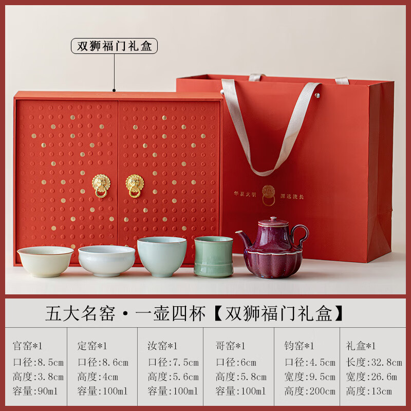 聚宋时瓷艺,纳五大名窑;双狮福门礼盒;方寸艺术 藏用皆宜 开片纹饰 可观可养