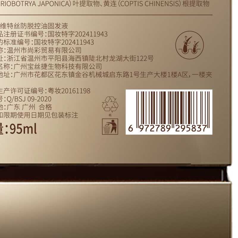 配置清单: 防脱控油固发液95ml(金棕色)*1