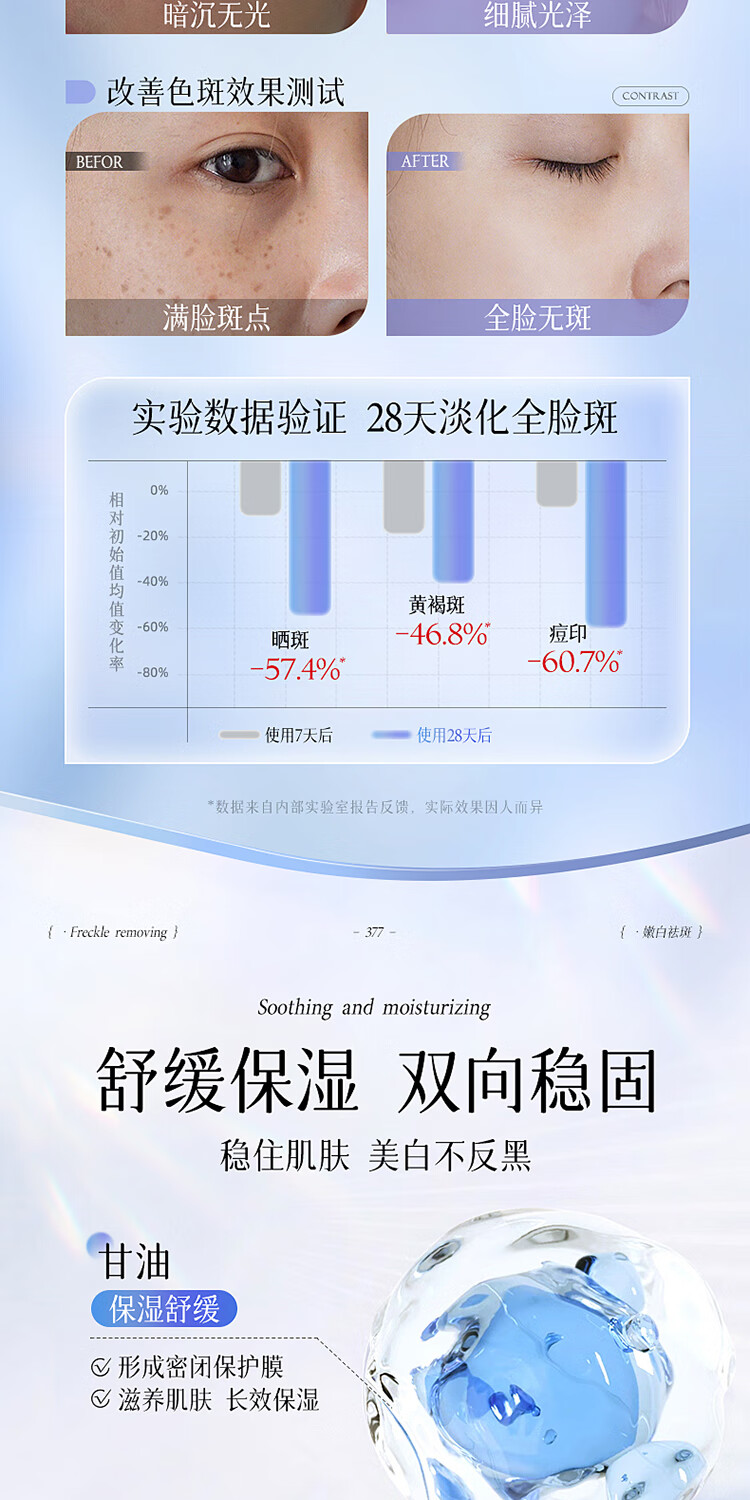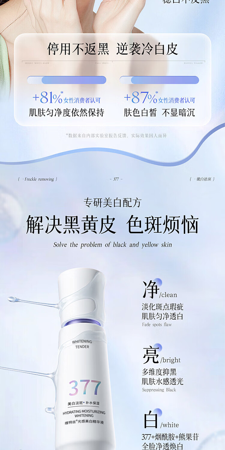 377美白精华液;祛斑补水保湿;烟酰胺淡化
