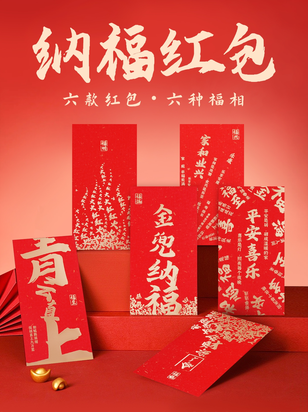 原创设计新年红包单品;可定制logo;烫金印花,现货均有数量