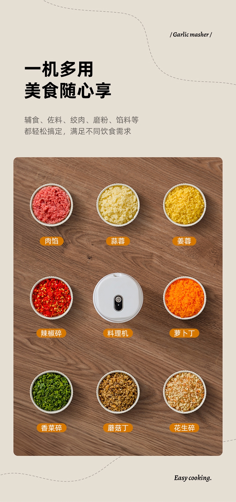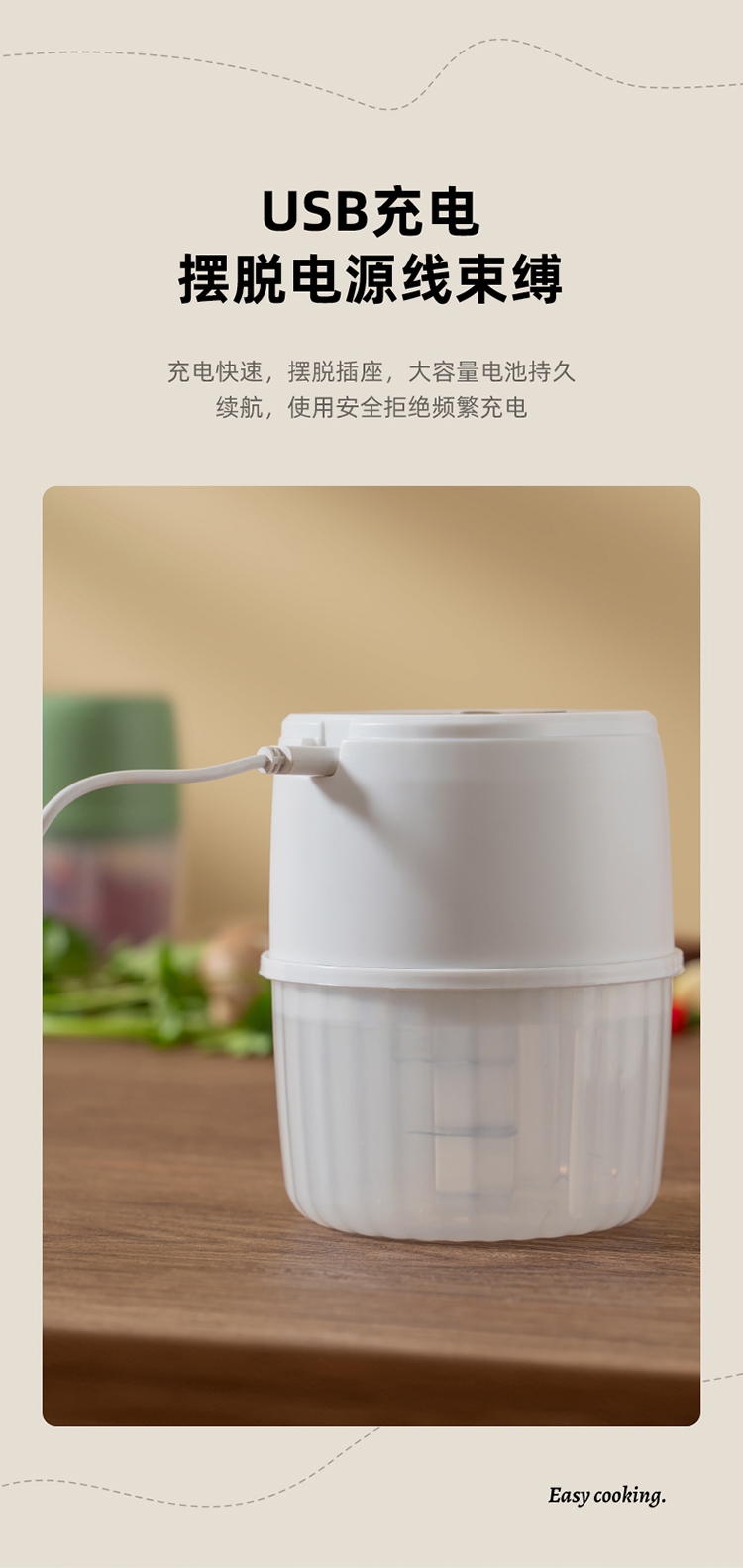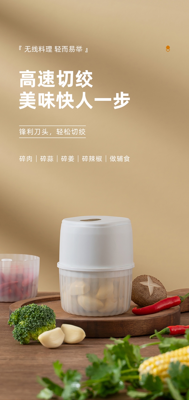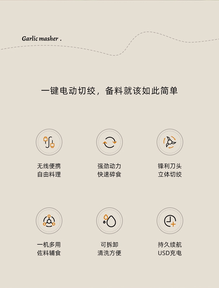 无线便携自由料理;强劲动力 快速碎食;锋利刀头 立体切绞