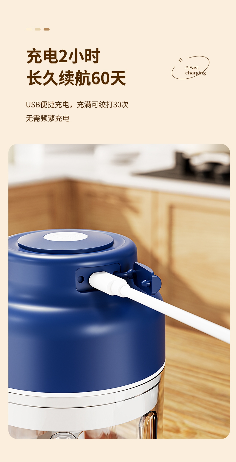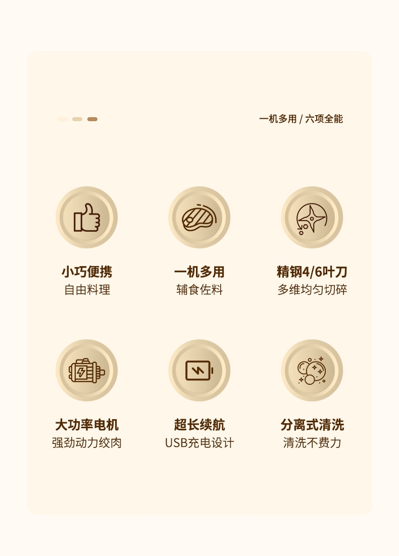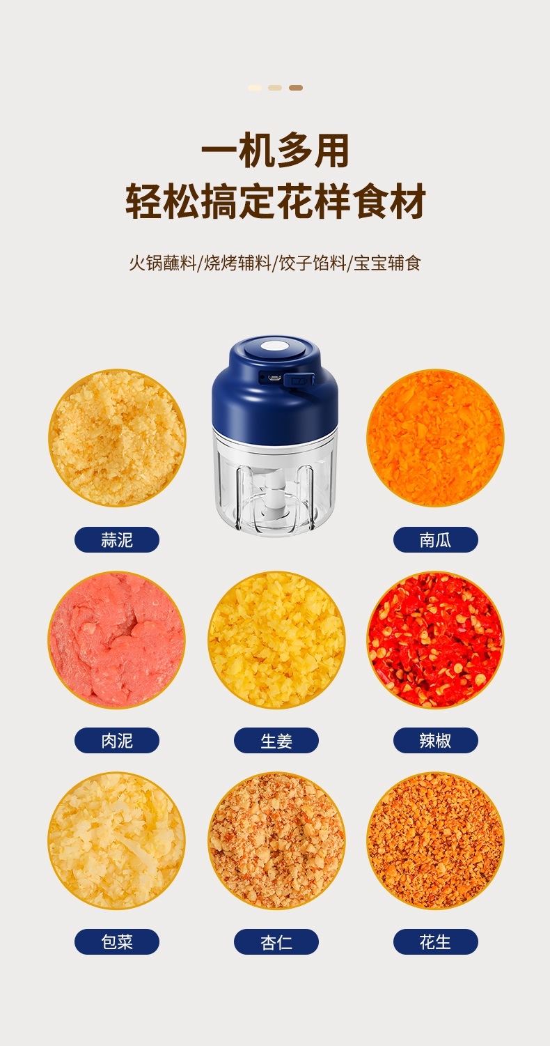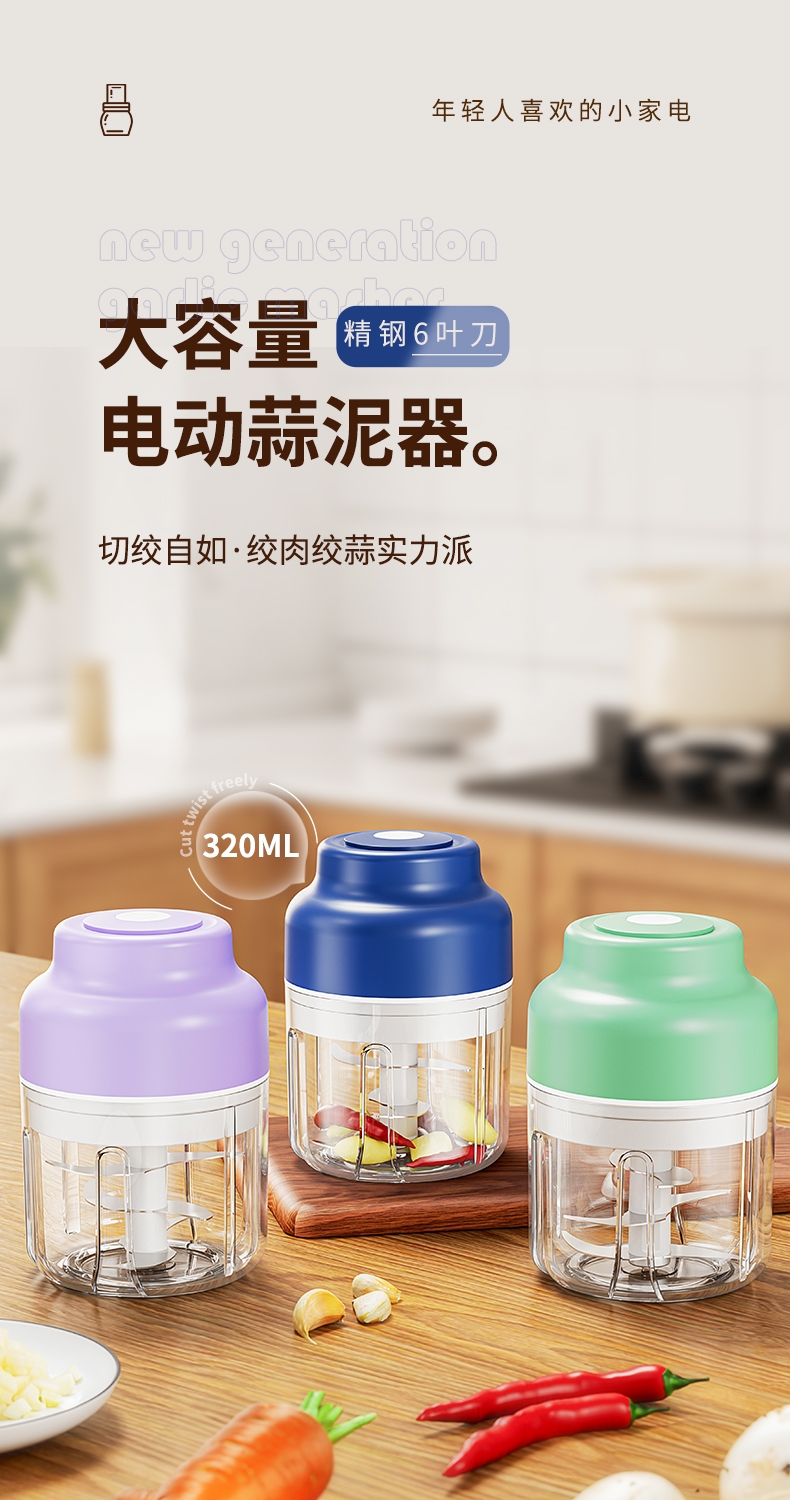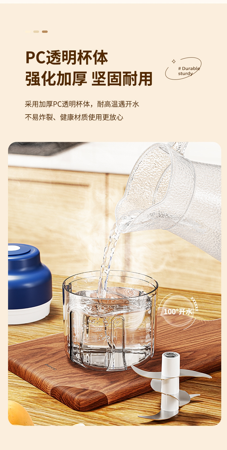 小巧便携自由料理;精钢4/6叶刀多维均匀切碎;大功率电机强劲动力绞肉