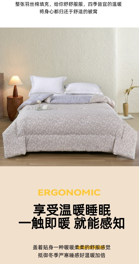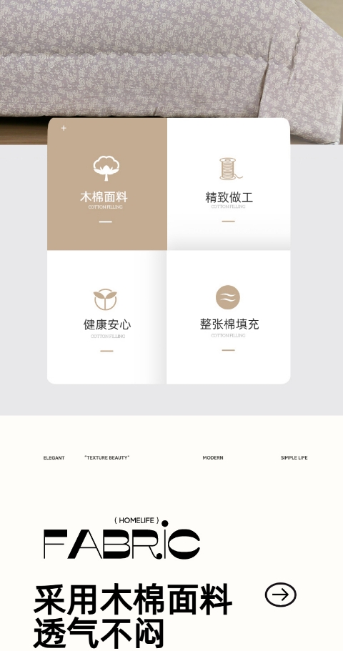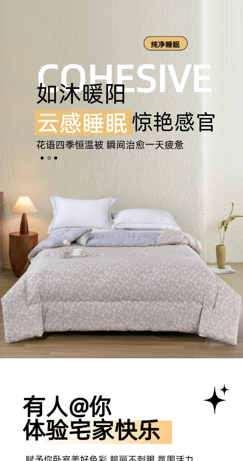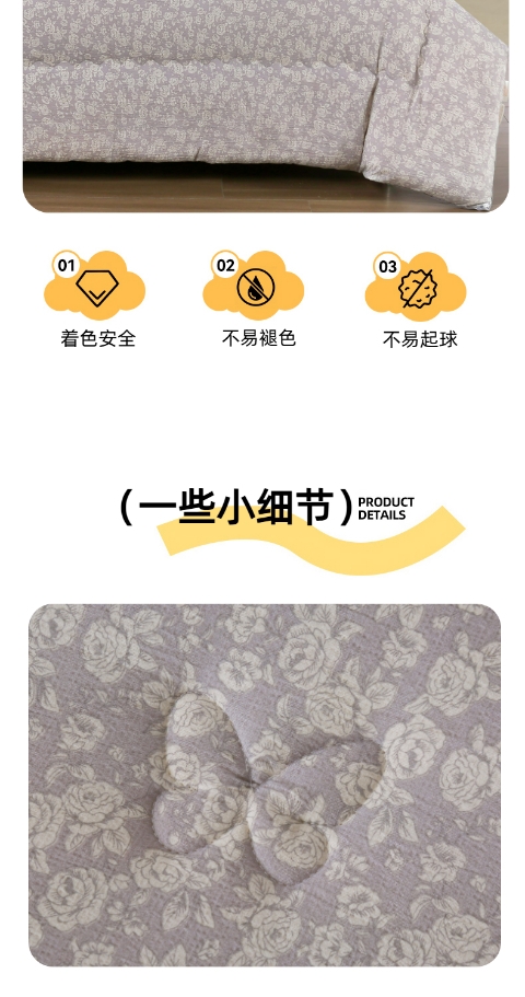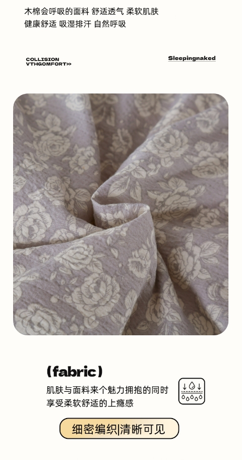 天然纤维混纺,自然环保;手感细腻柔软;亲肤性好