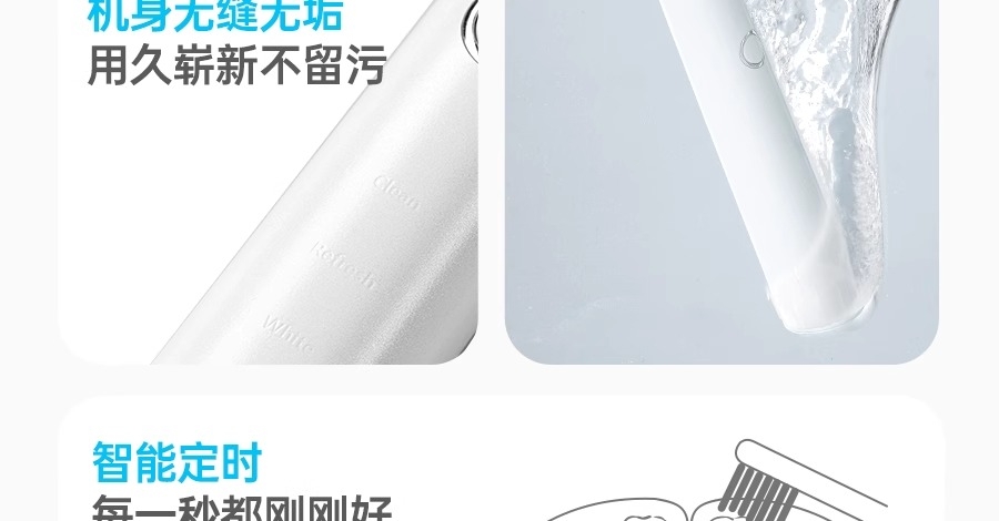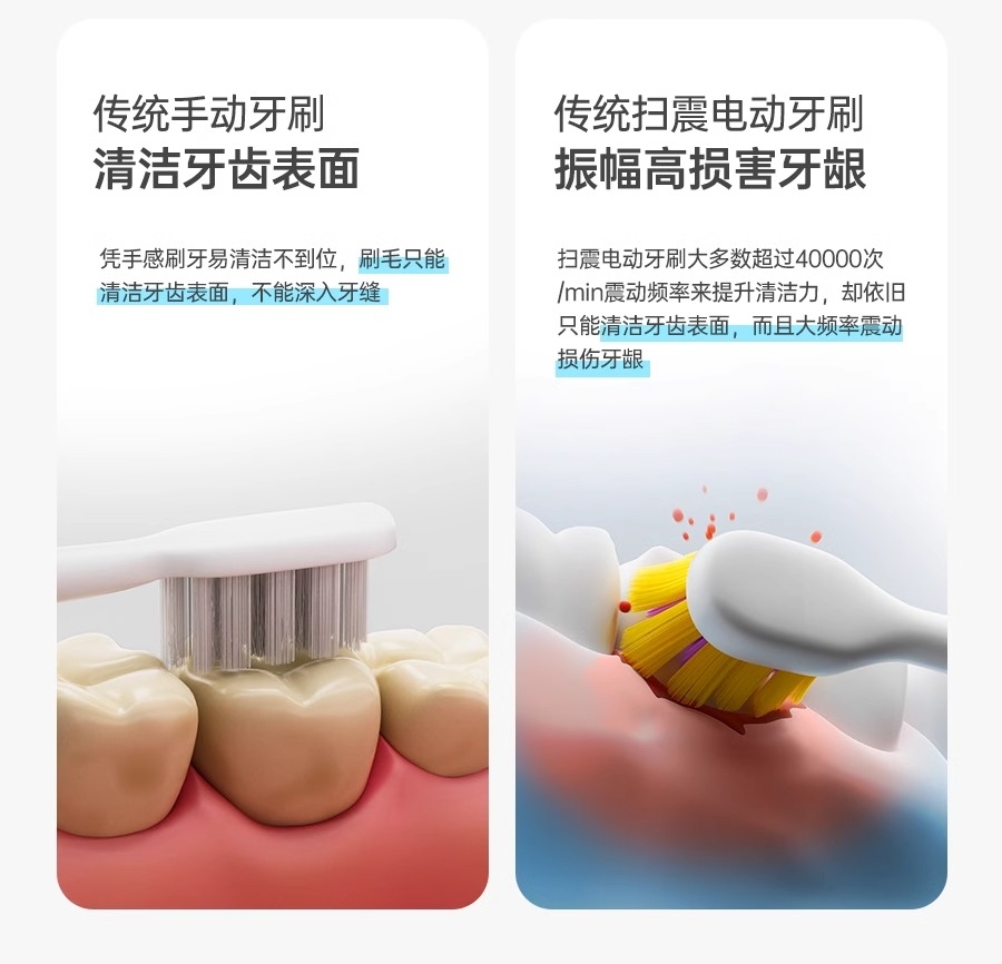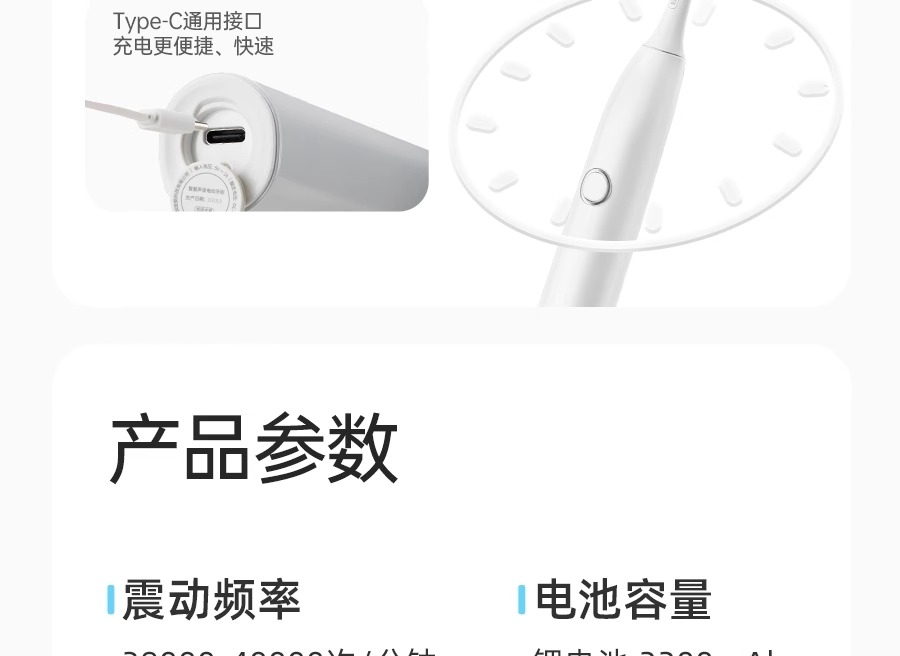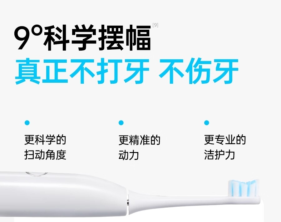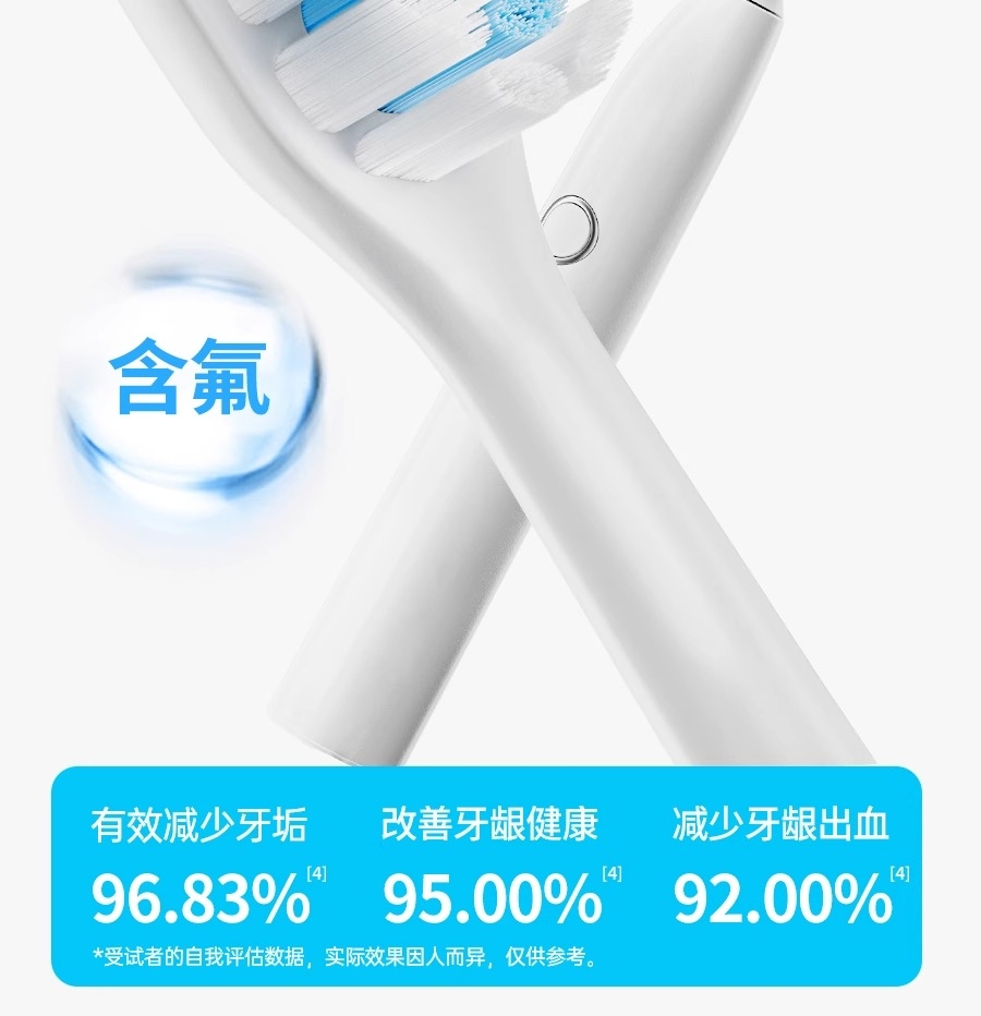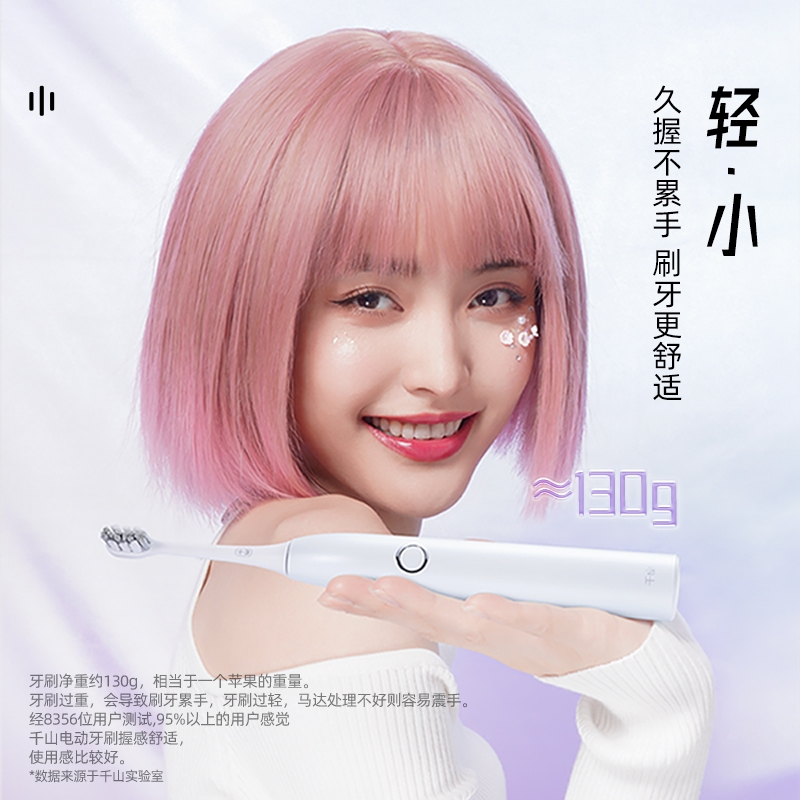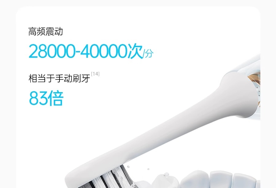 超长续航100天;30s换区提醒,2min定时清洁;三效刷头,防蛀+清洁+护龈