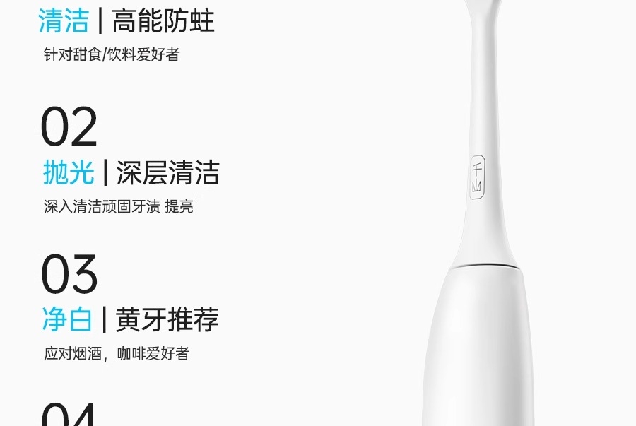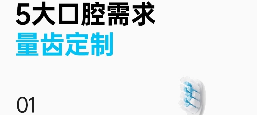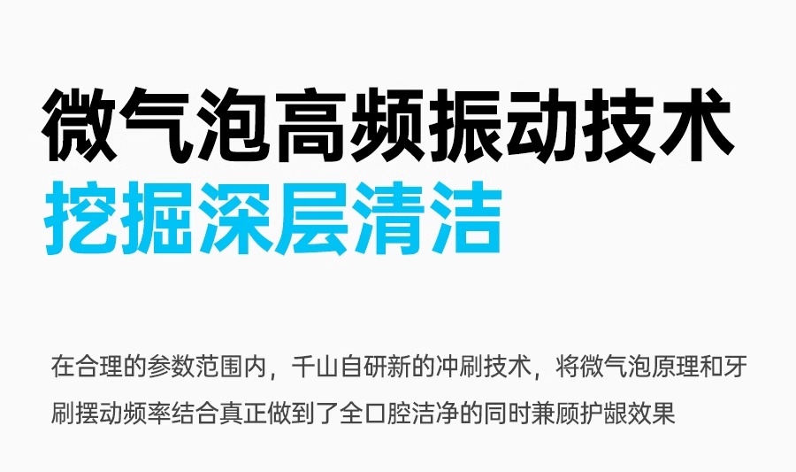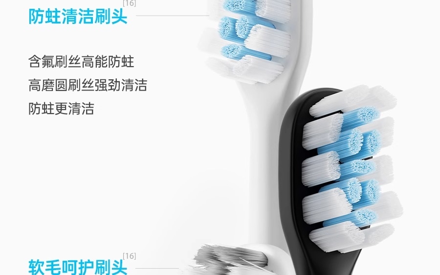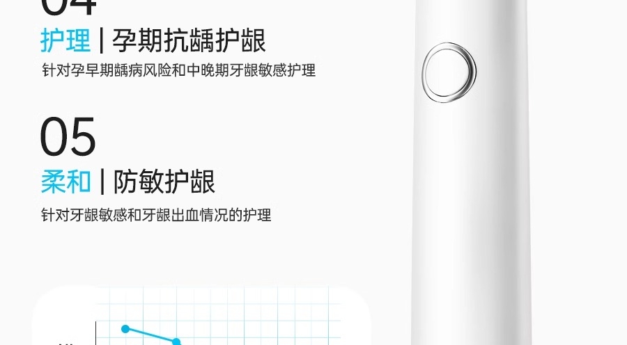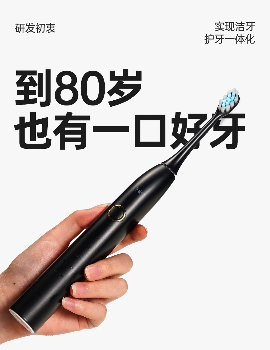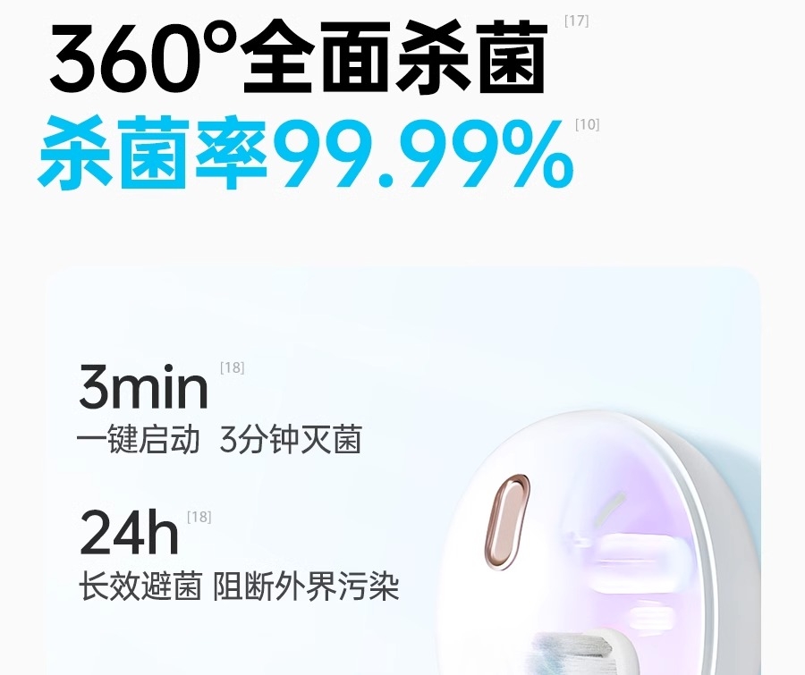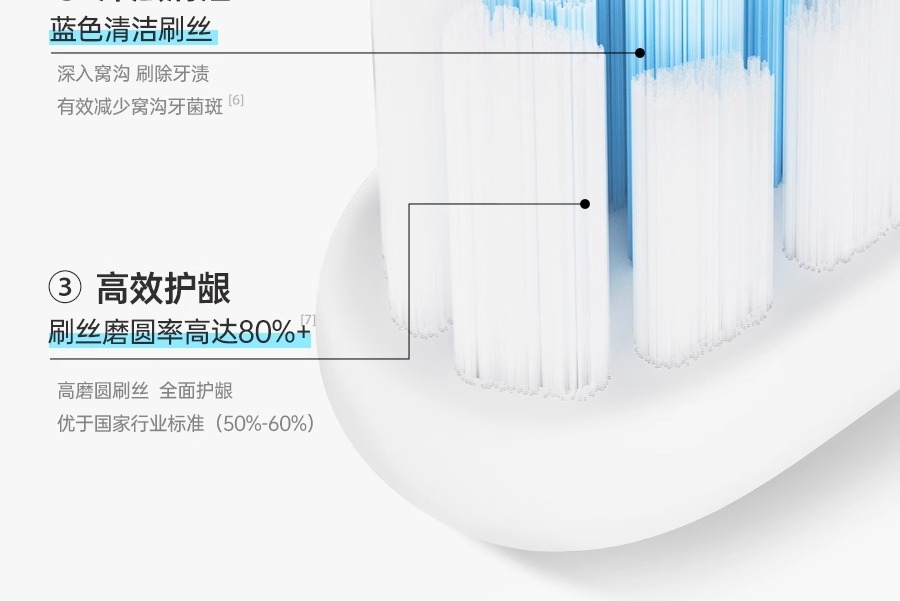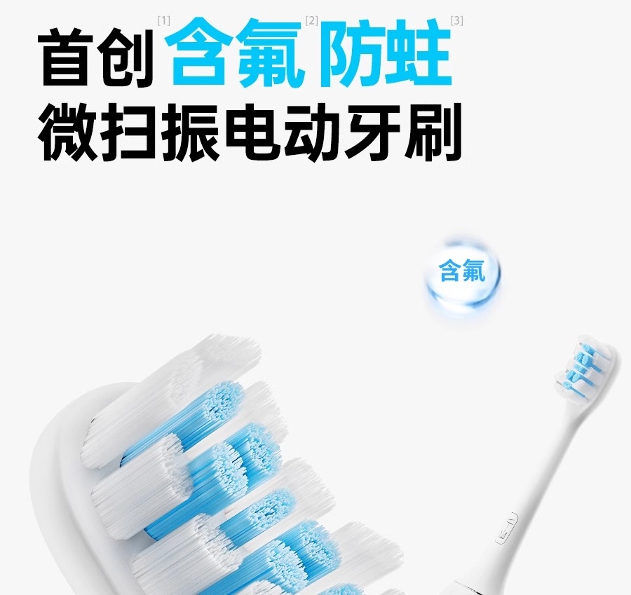 超长续航100天;30s换区提醒,2min定时清洁;三效刷头,防蛀+清洁+护龈