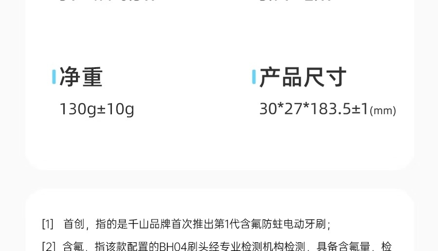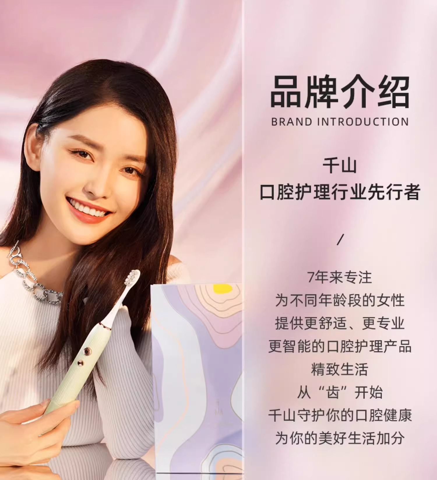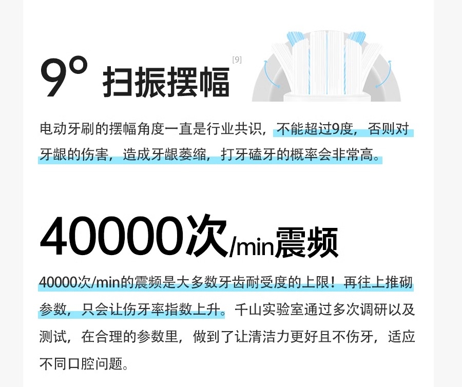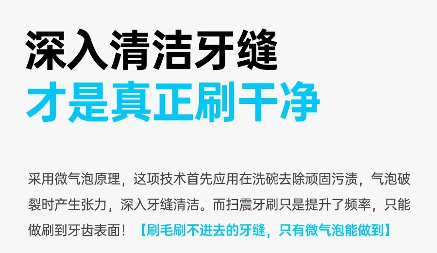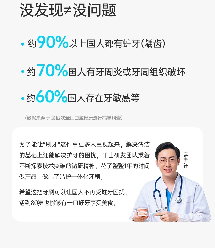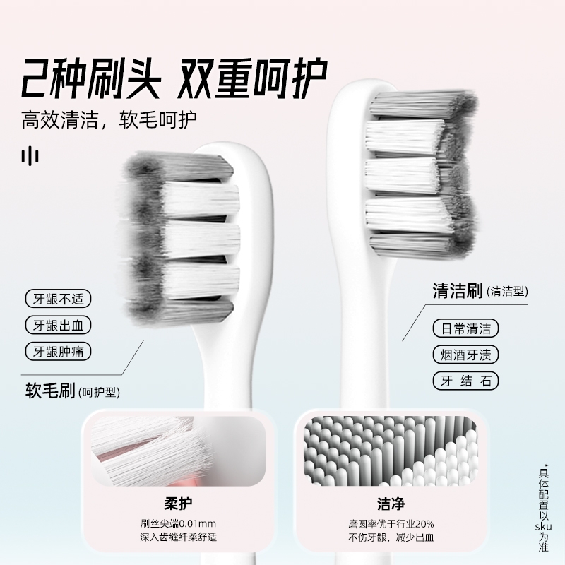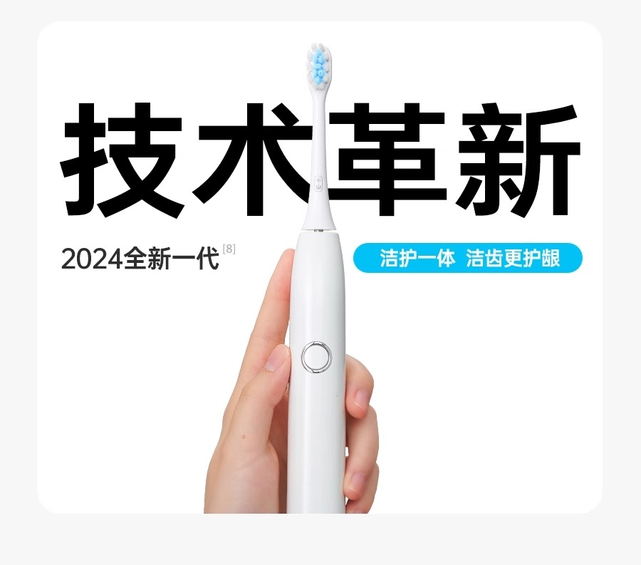 超长续航100天;30s换区提醒,2min定时清洁;三效刷头,防蛀+清洁+护龈