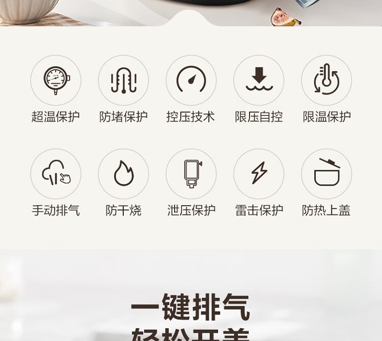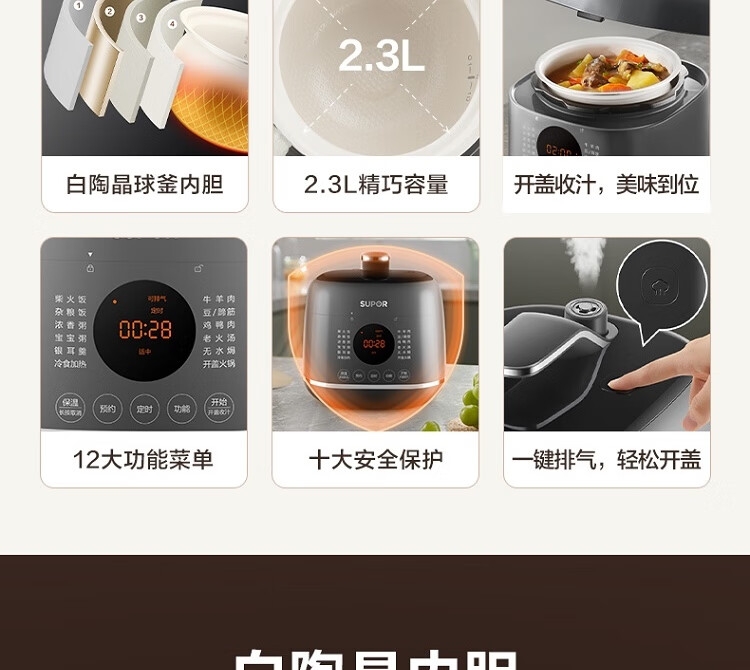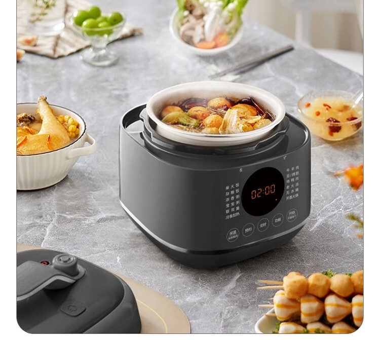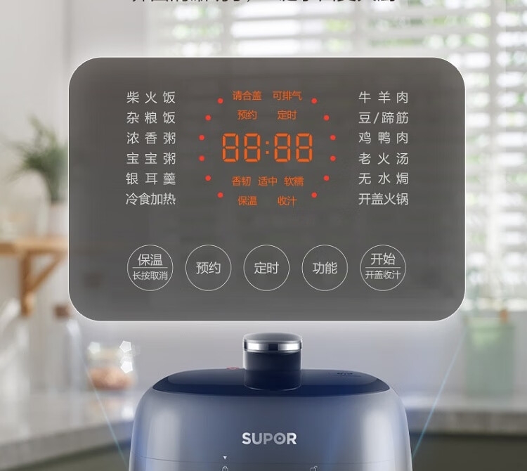 电压锅功能:煲蒸,煮,炖,焖,预约,定时,多功能