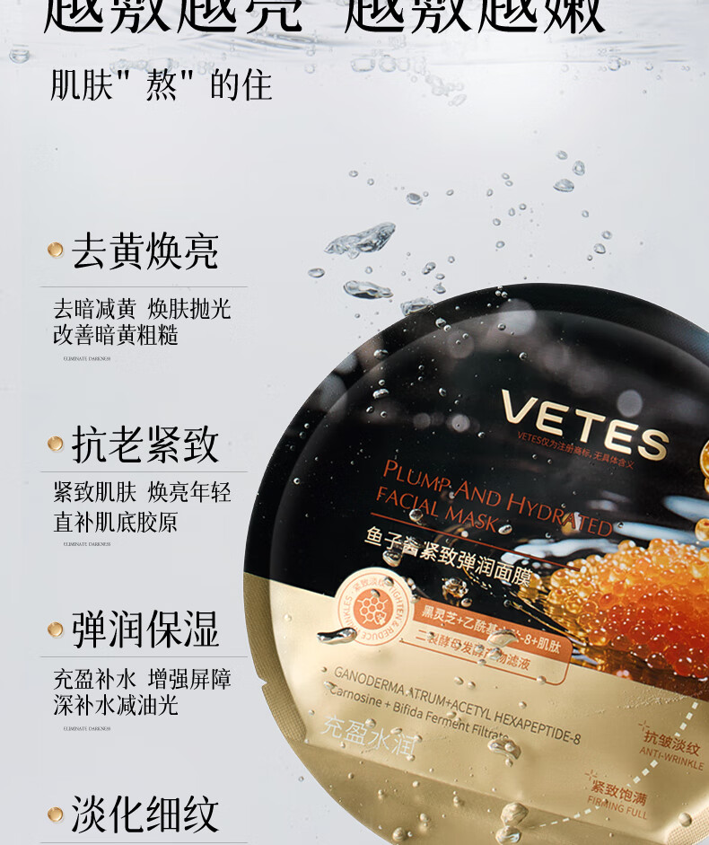 鱼子酱面膜;抗衰老补水;保湿淡纹去黄