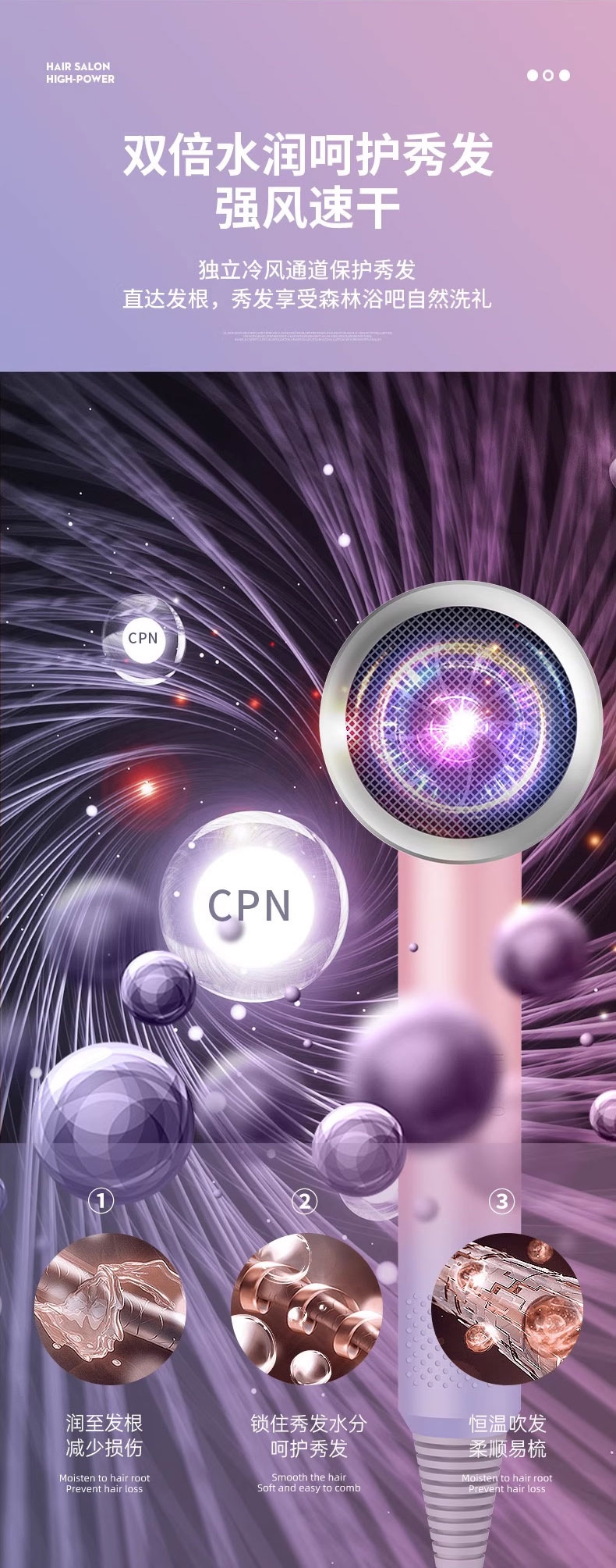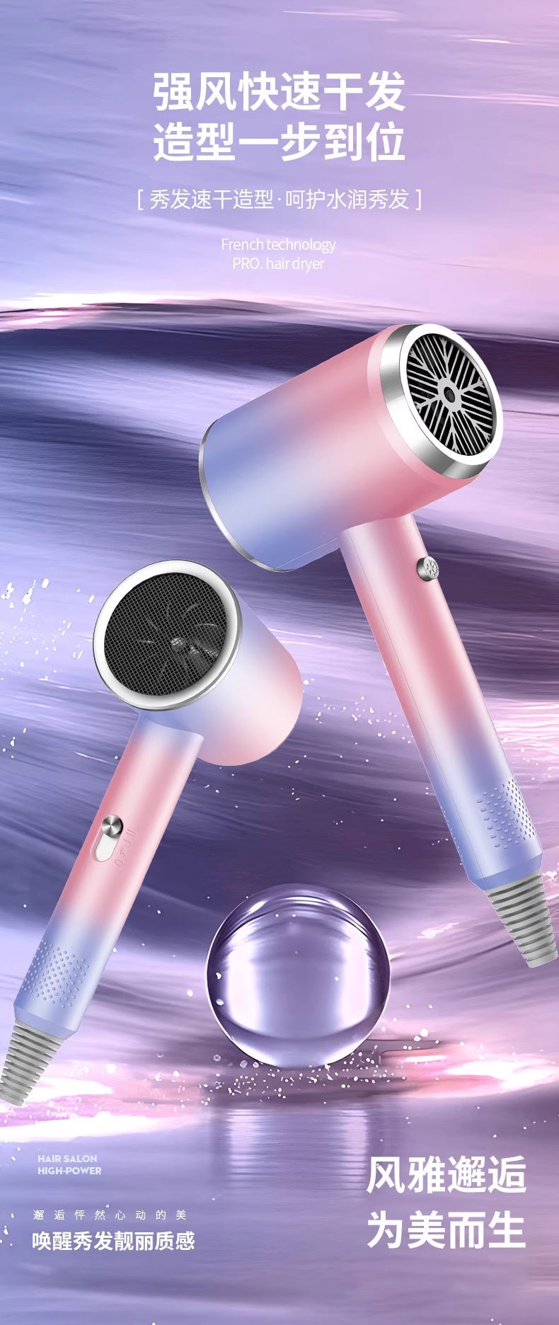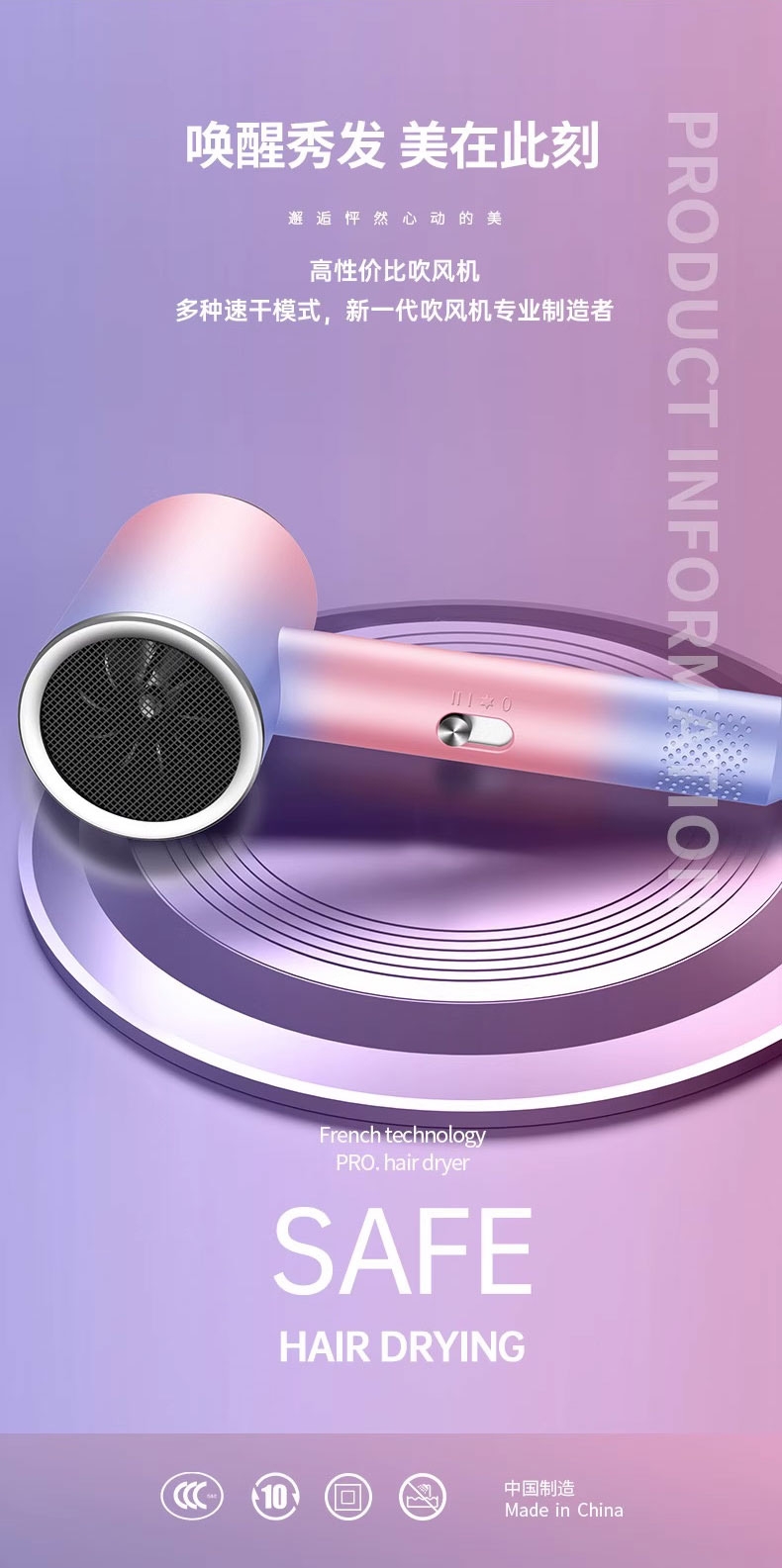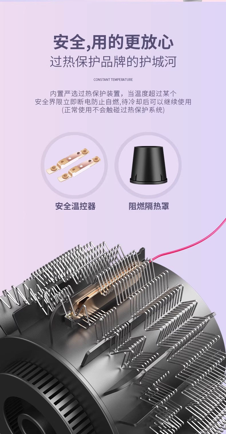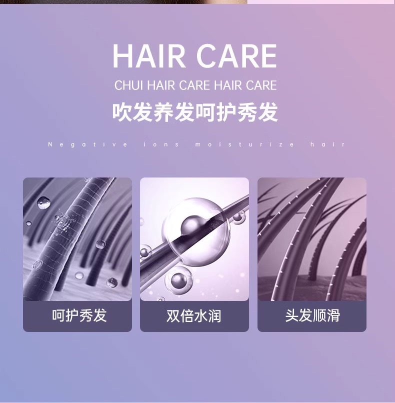 速干造型+高转速电机:高转速电机驱动强劲风力;冷热风切换+恒温护发:一键实现冷热风自由切换;低噪音+轻量化设计:低噪音运行不干扰生活节奏