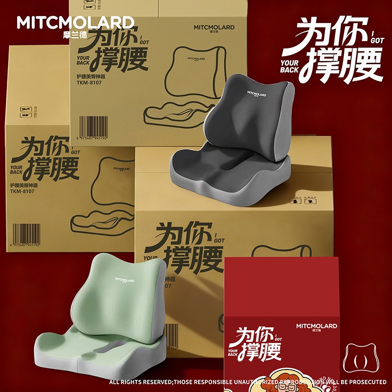 科学护腰,久坐不酸:贴合腰椎曲线的护腰靠垫;舒适护臀,久坐不累:人体工学设计的护臀坐垫;从材质到工艺严格把控,给你看得见的品质与摸得着的舒