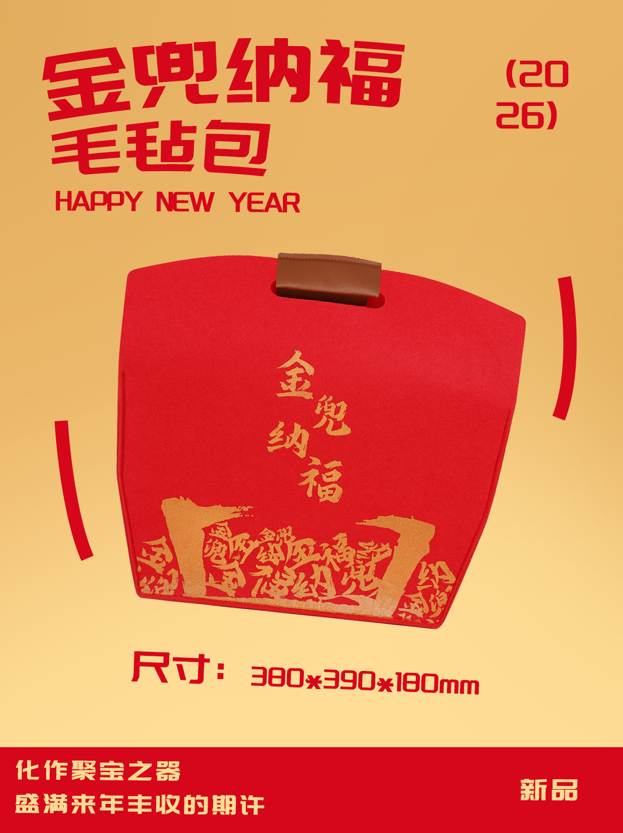 贪吃猫文创 金兜纳福毛毡包马年单品