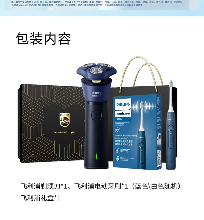 配置清单:剃须刀2885*1 牙刷HX5181蓝*1
