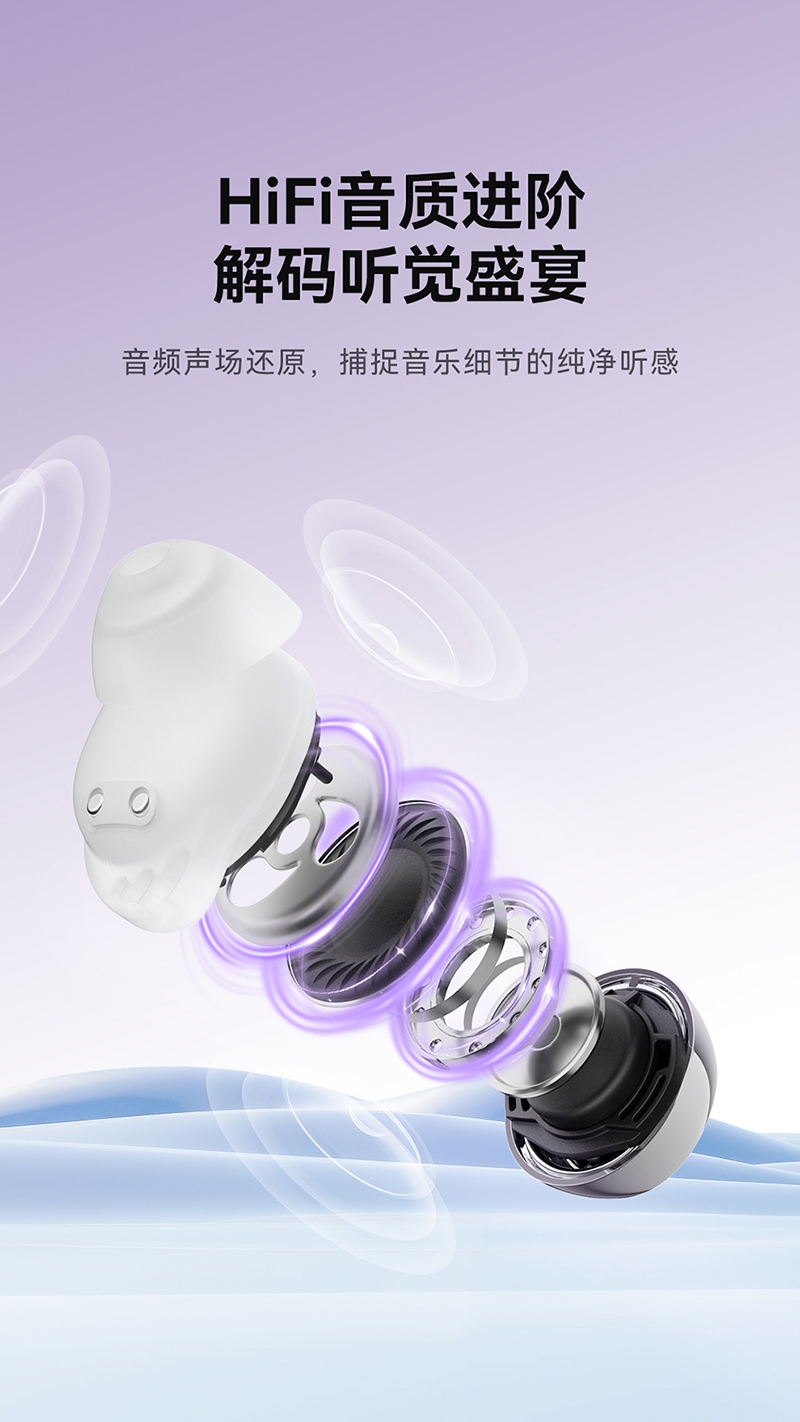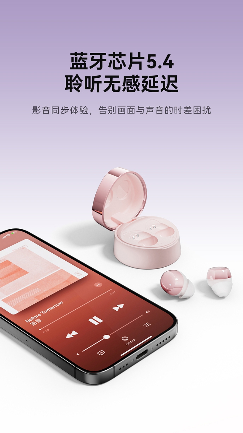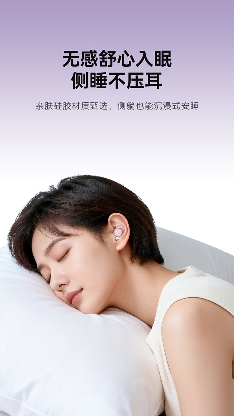 蓝牙5.4 无感延迟,柔软舒服,佩戴稳固;无感入耳,舒心入眠,侧睡不压耳;高保真扬声器单元,低音扎实沉稳,高音清澈透亮