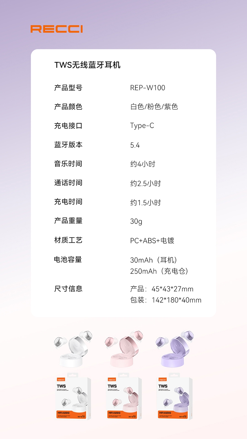 锐思 TWS睡眠蓝牙耳机小巧时尚新颖REP-W100