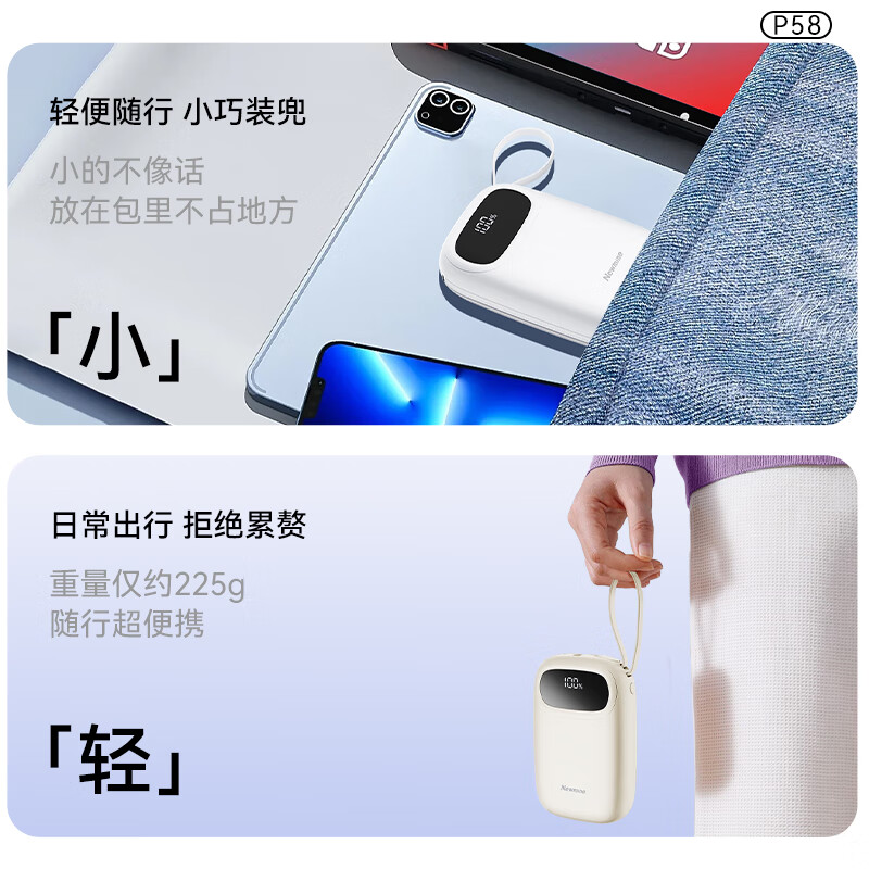 自带双线;轻便随行 小巧装兜;10000mAh大容量