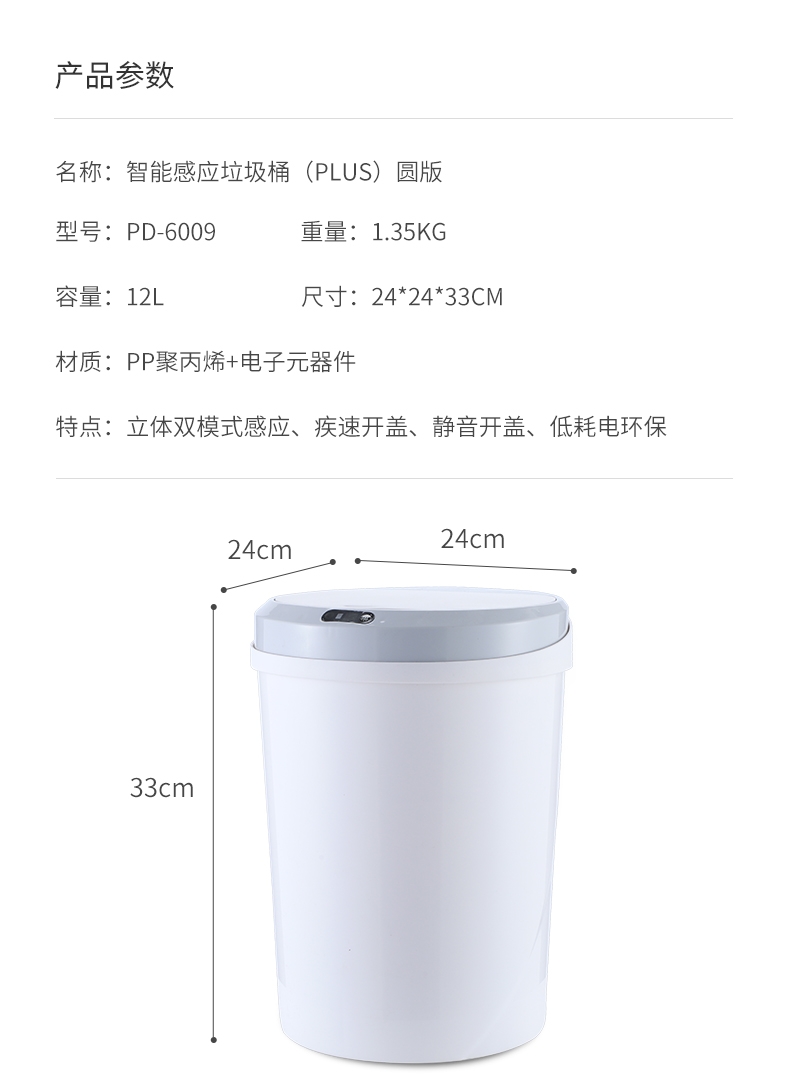暗影 12L圆形垃圾桶PD-6009