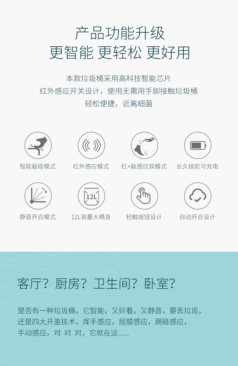 全方位感应开盖;开盖速度快;感应灵敏、使用范围广