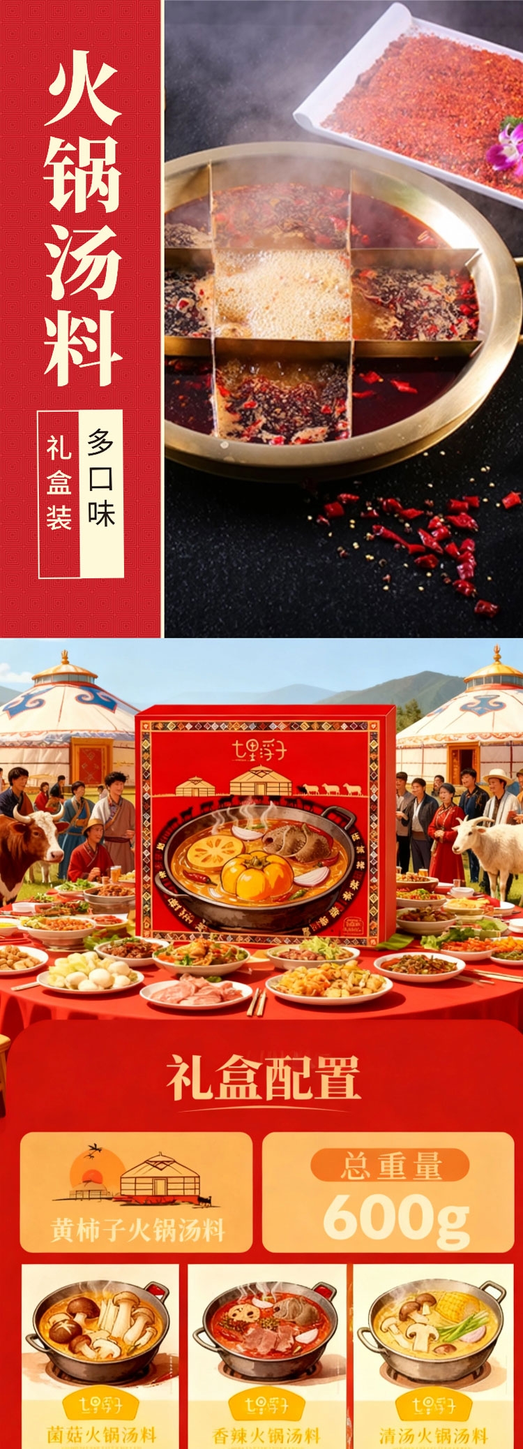 七里浮子 火锅汤料礼盒600g