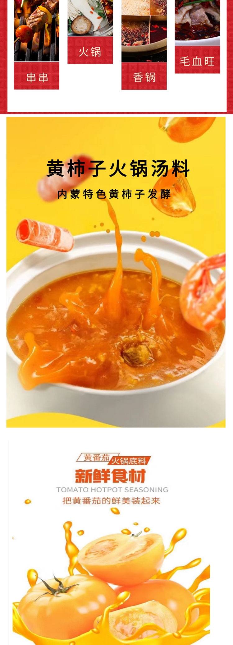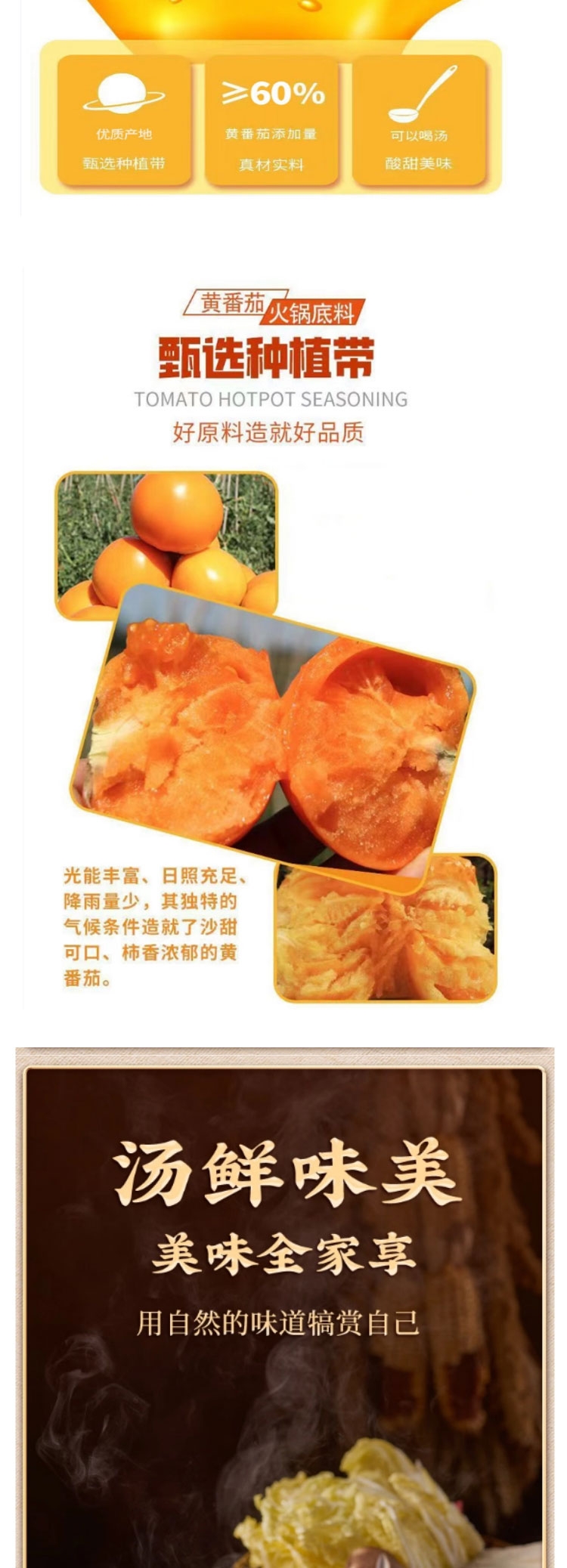 多种口味组合,满足全家口味;内蒙古五原黄柿子为汤料原料;吃法百搭、一料多用。