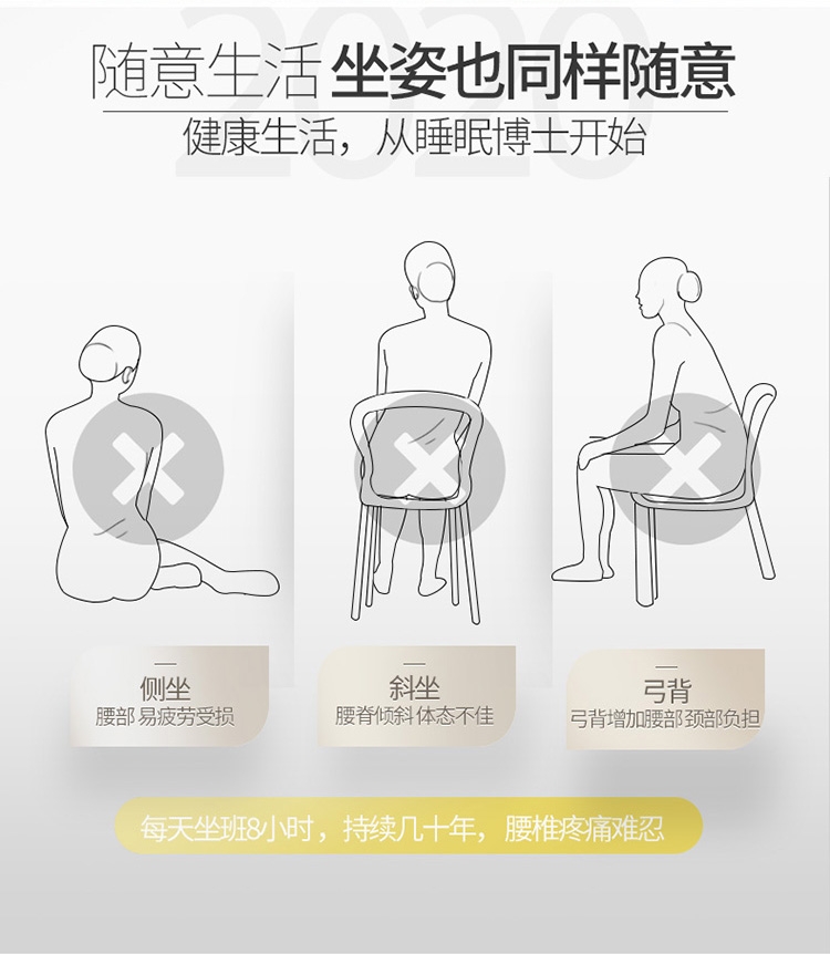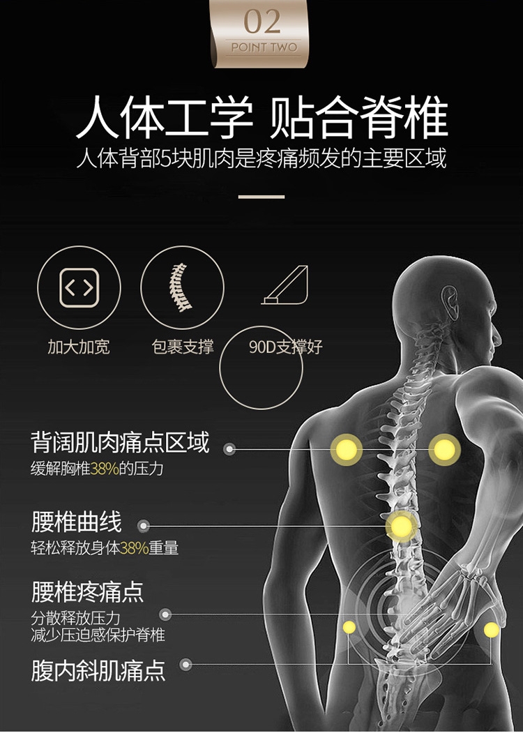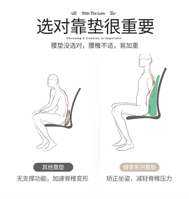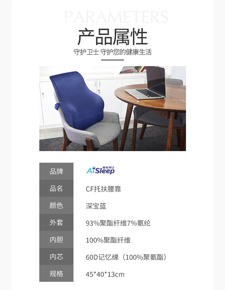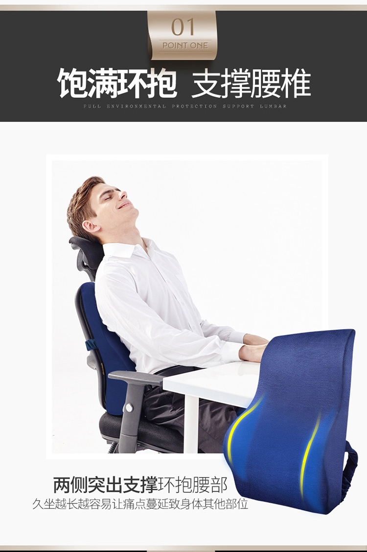 靠垫设计符合人体工程学原理,良好的弹性和支撑性;贴合腰部曲线,背部贴服区增高;对腰椎盘突出腰肌劳损等疾病的预防和康复有积极意义