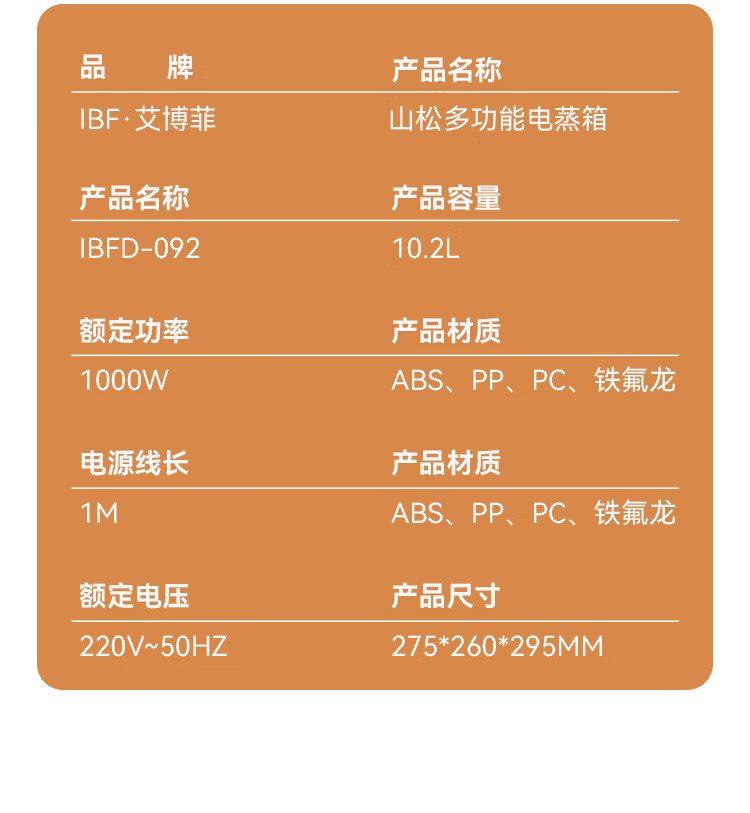 艾博菲 山松多功能电蒸箱10.2LIBFD-092