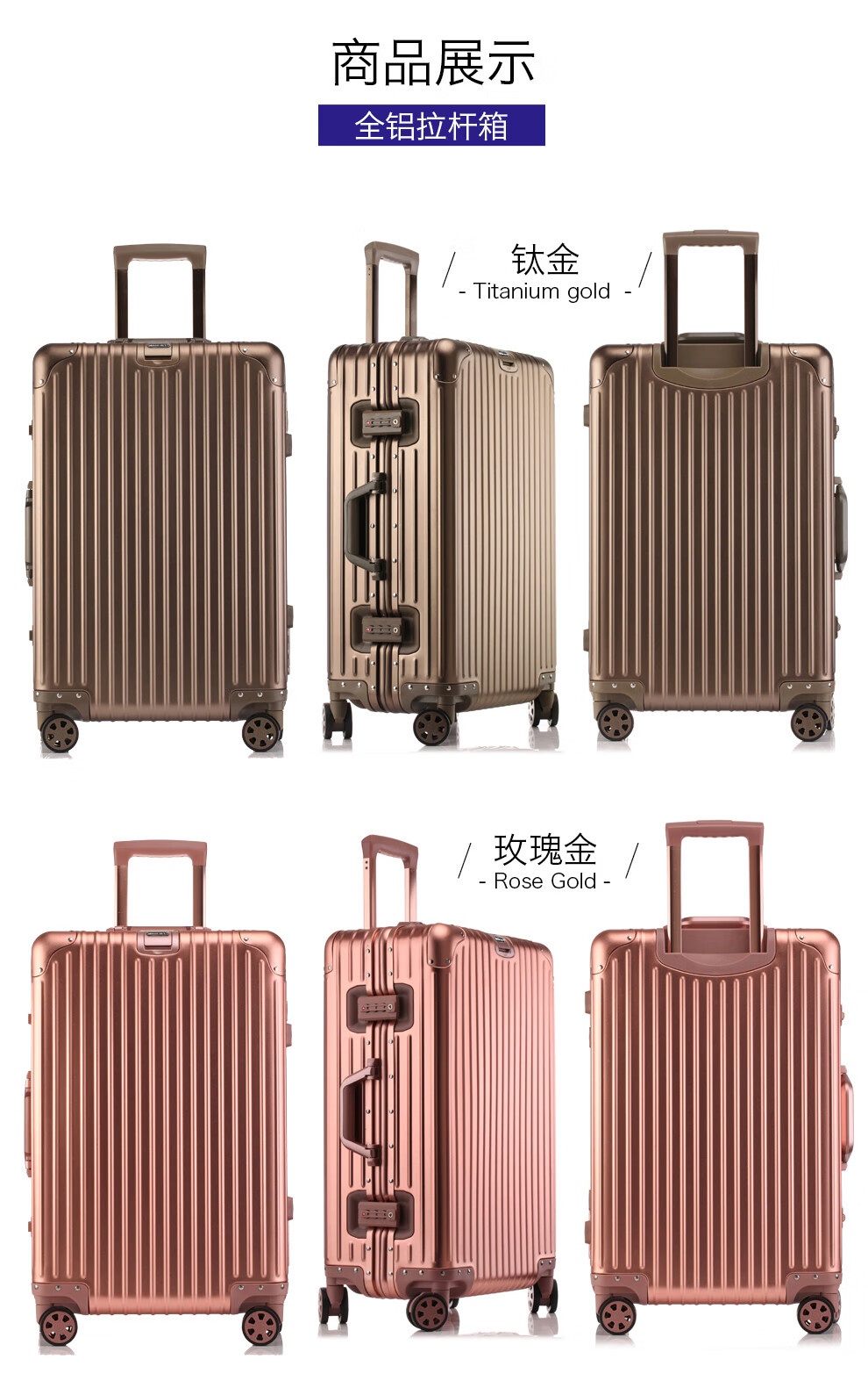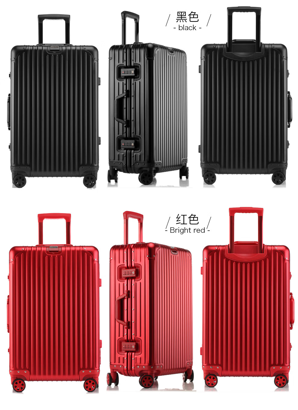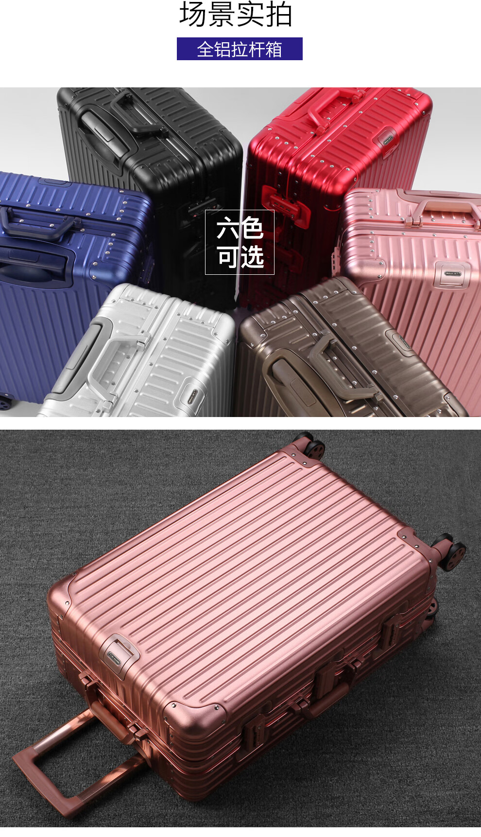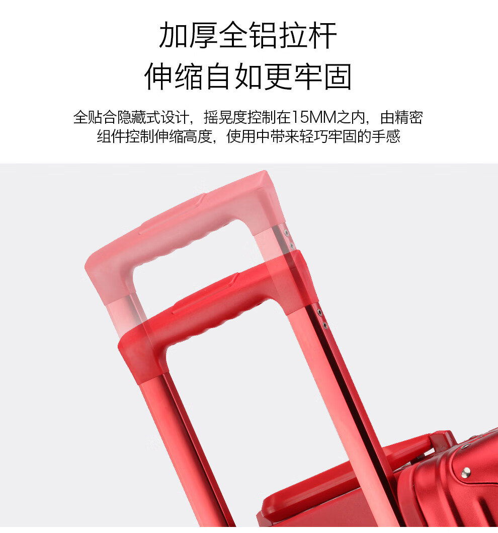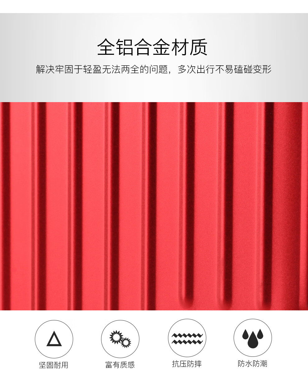 全铝合金材质 · 轻盈坚固多色彩选择;高端材质成就品质之选;耐用精致无与伦比