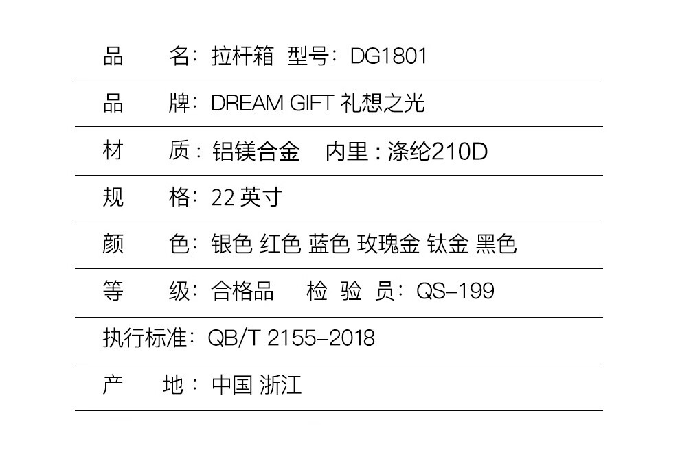 礼想之光 铝镁合金全铝金属商务拉杆箱DG1801-22英寸