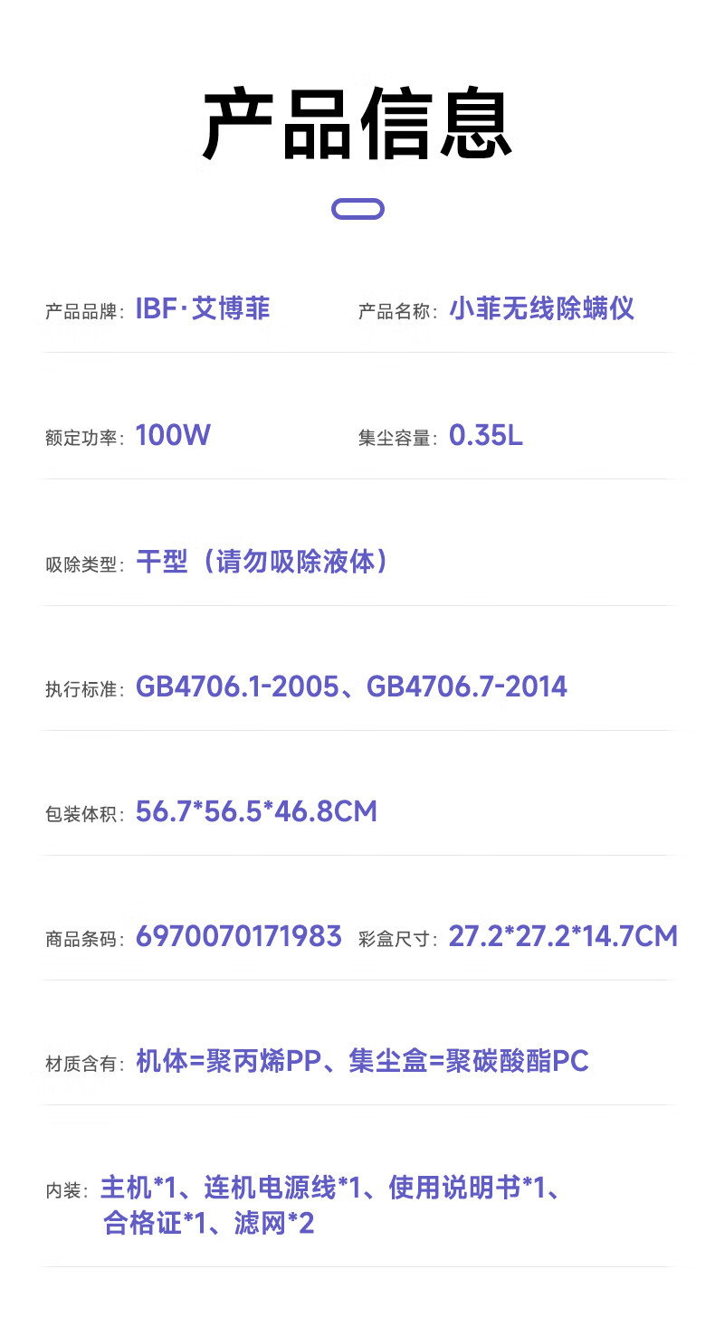 材质:机体=聚丙烯PP、集尘盒=聚碳酸酯PC