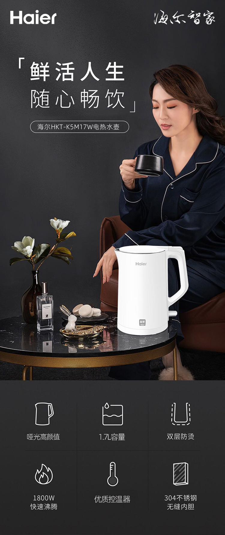 海尔 速电热水壶1.7L