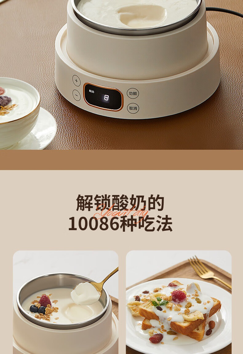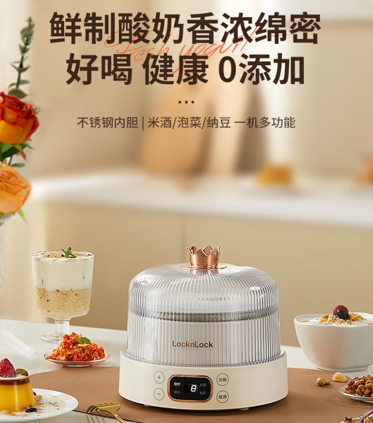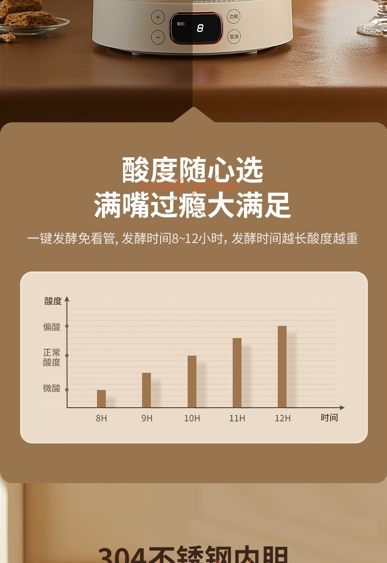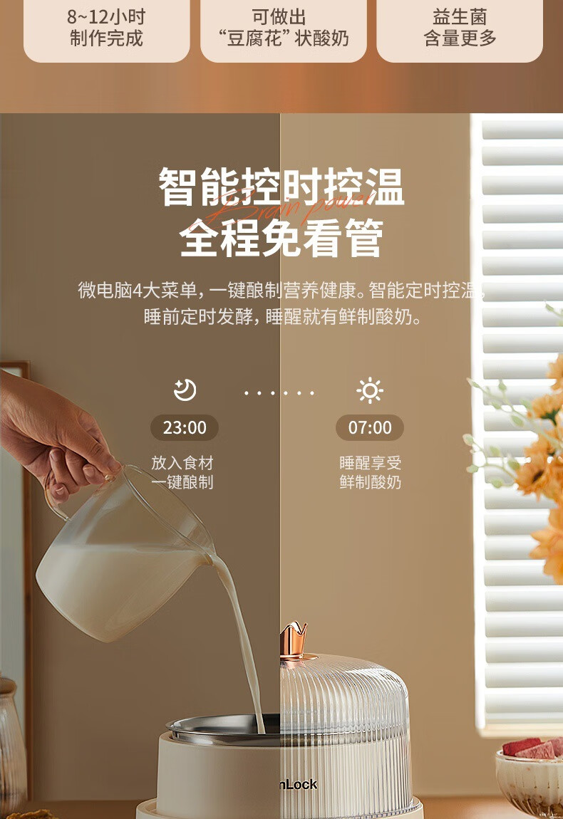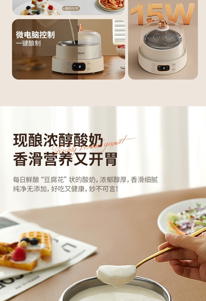 现酿浓醇酸奶,香滑营养又开胃;304不锈钢内胆,1L容量;一键操作智能控时控温,全程免看管