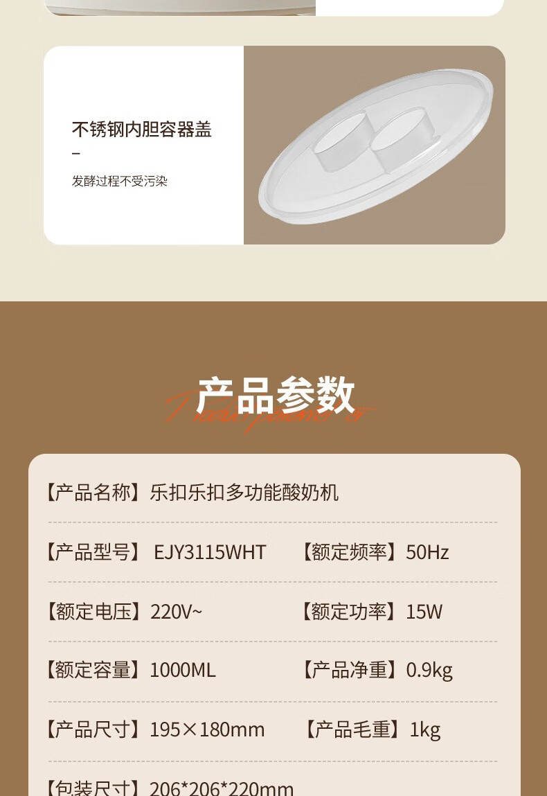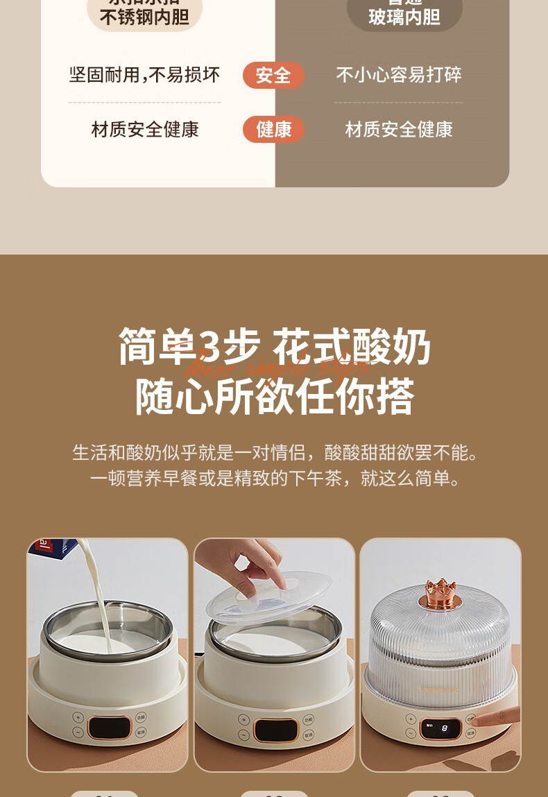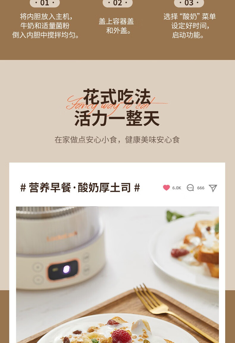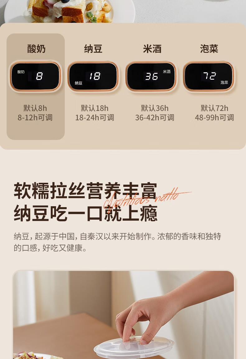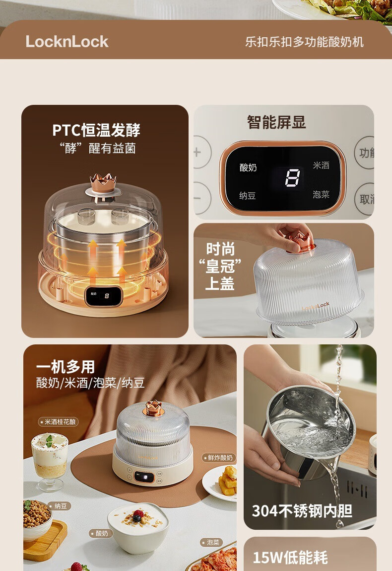 现酿浓醇酸奶,香滑营养又开胃;304不锈钢内胆,1L容量;一键操作智能控时控温,全程免看管