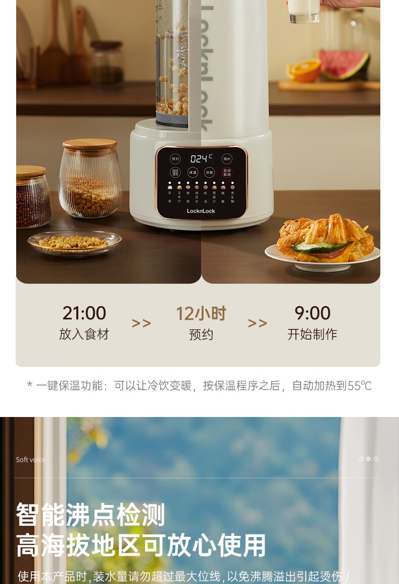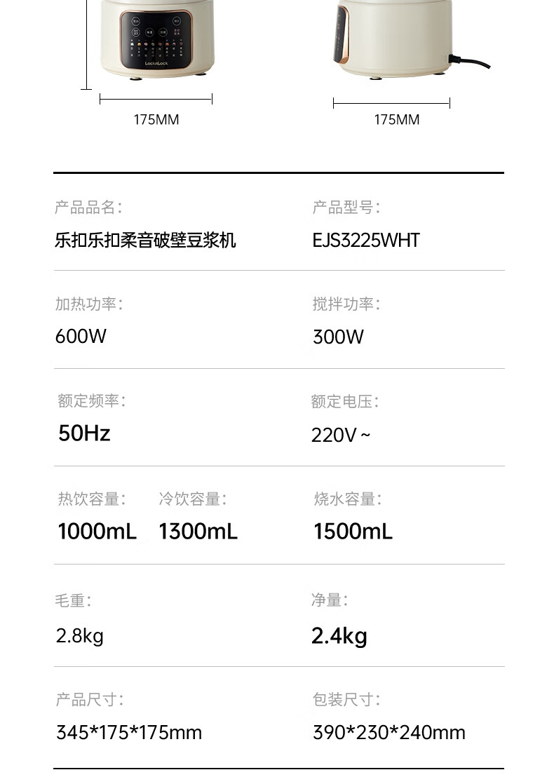 乐扣乐扣 全自动加热破壁养生机1.5LEJS3225WHT